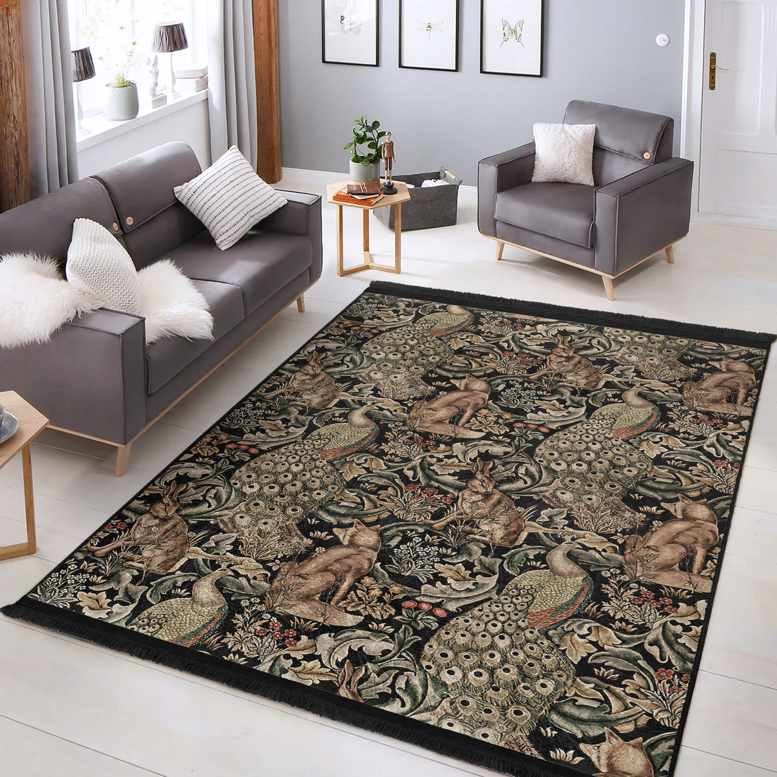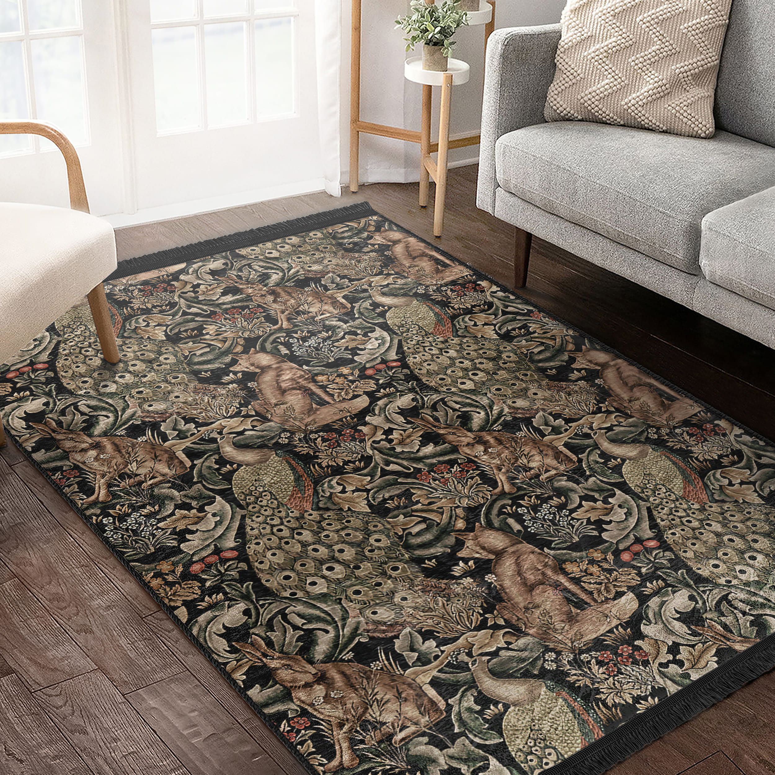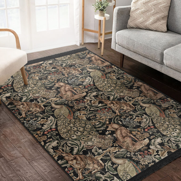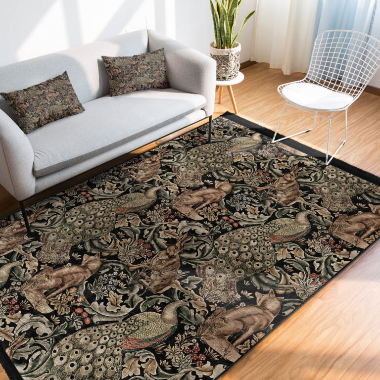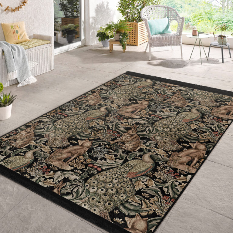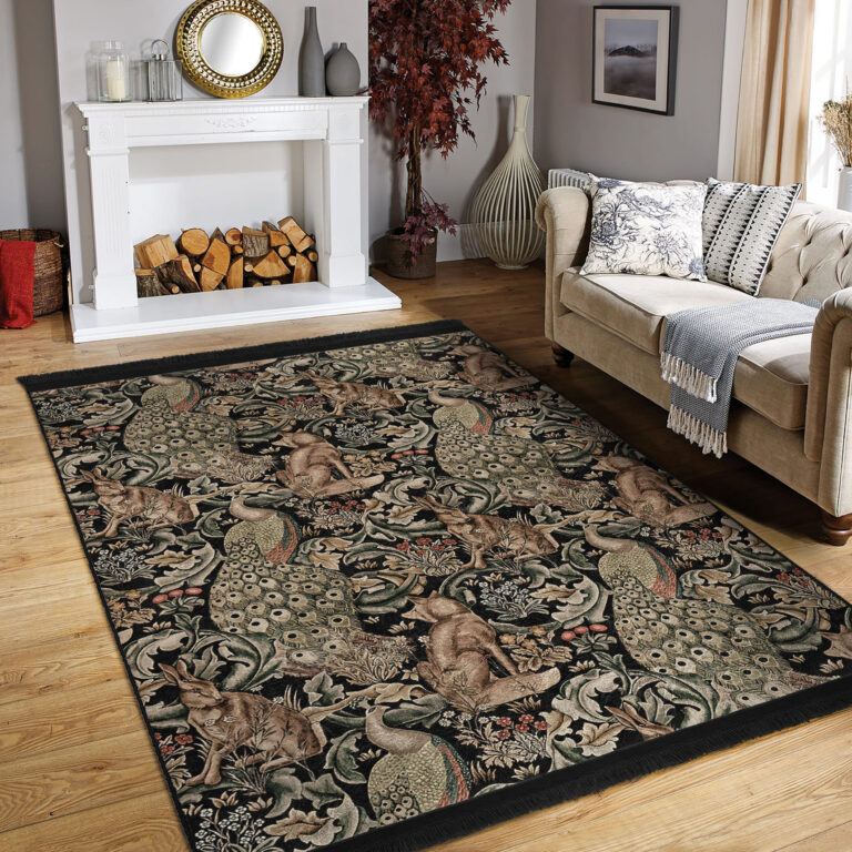 Karmasik Renklerle Canlı Doğal Motifli Şık Salon Halısı – Makinede Yıkanabilir Kaymaz Tabanlı Halı