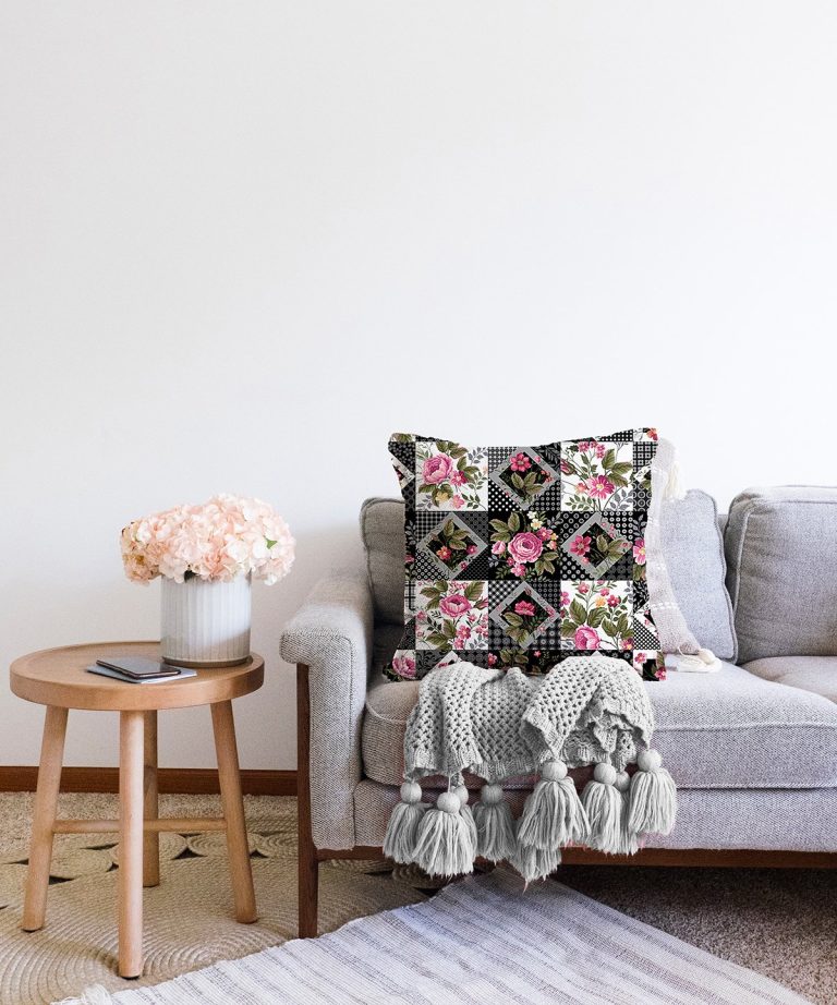 Kavaniçe Kare Desenli Dekoratif Raşel Yastık Kırlent Kılıfı