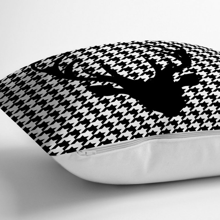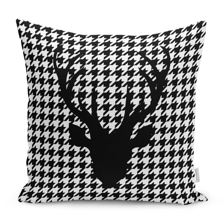 Kazayağı Zemin Geyik Tasarımlı Dekoratif Yastık Kırlent Kılıfı