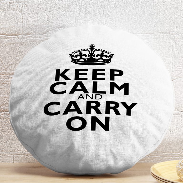 Keep Calm And Carry On Dekoratif Yuvarlak Yastık Kırlent Kılıfı