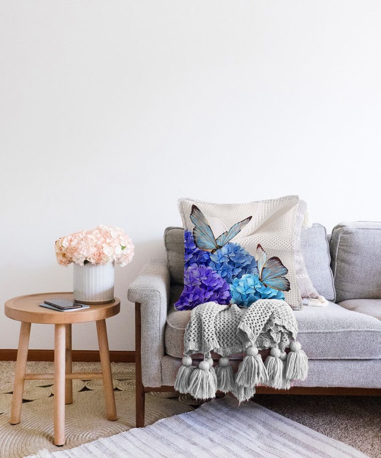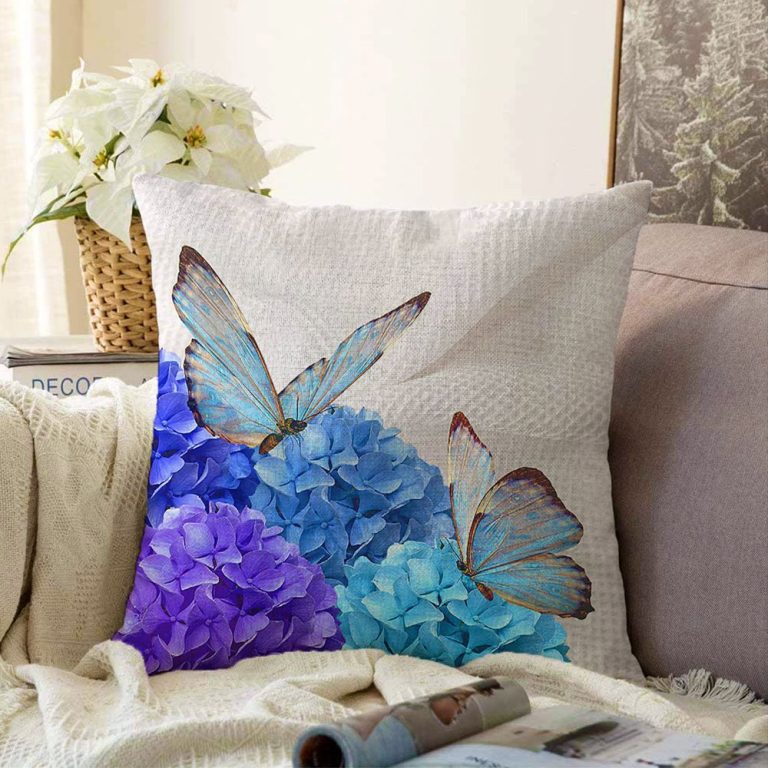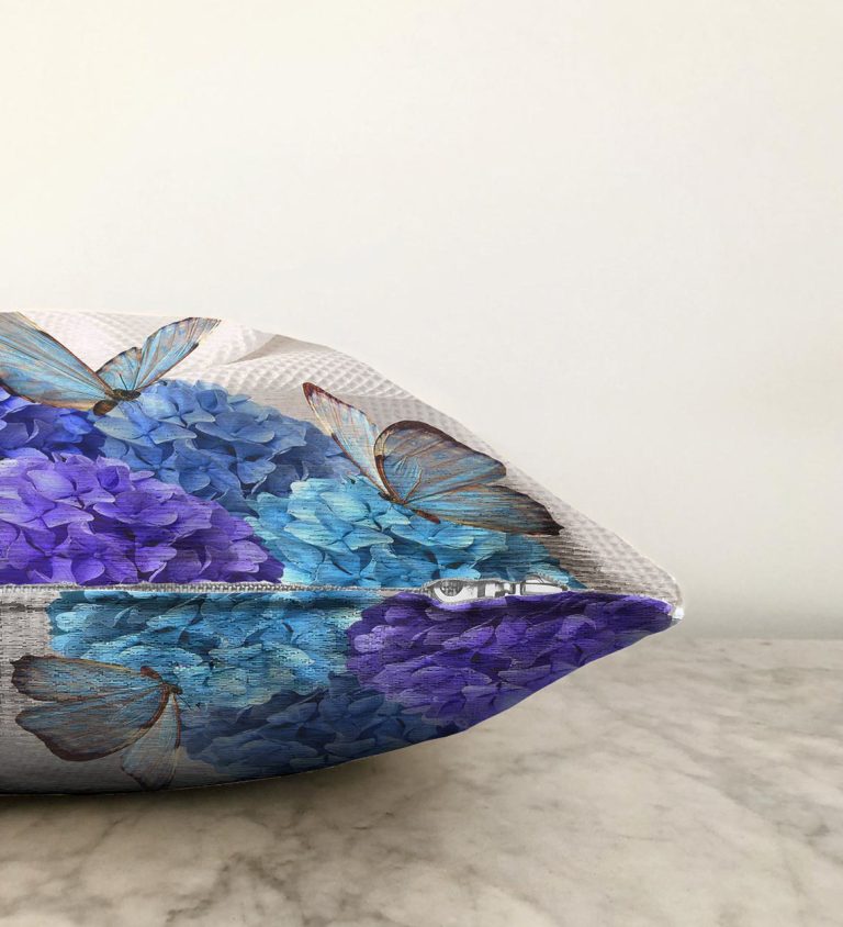 Kelebek Dünyası Dijital Baskılı Dekoratif Raşel Yastık Kırlent Kılıfı