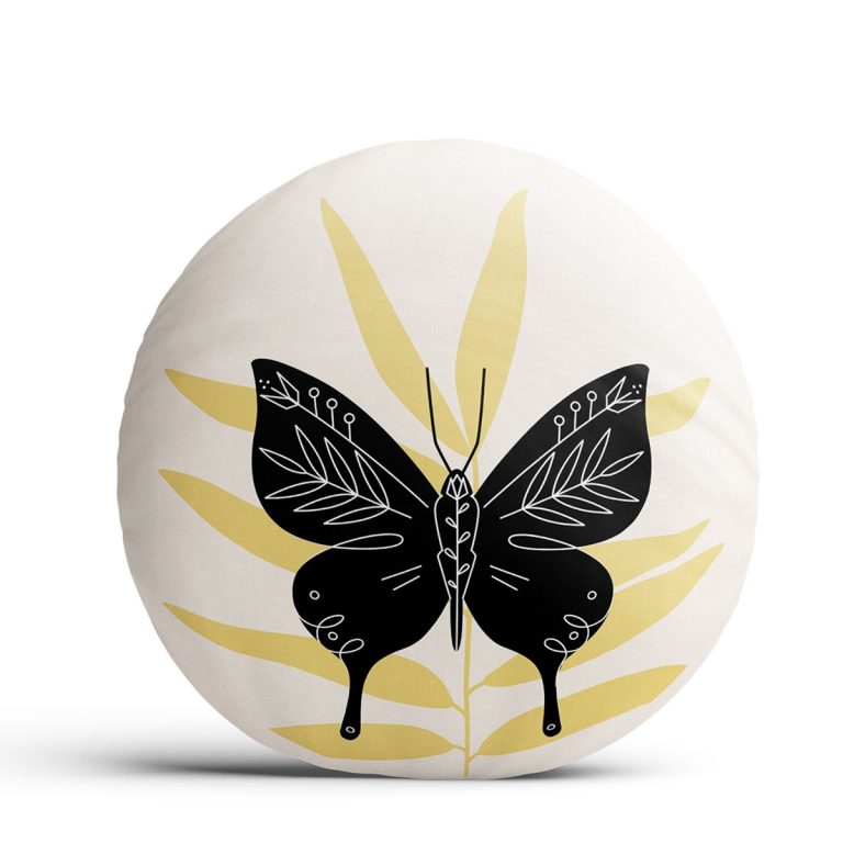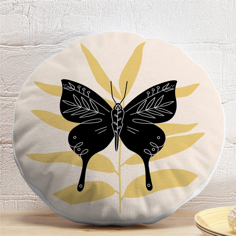 Kelebek Silüetli Özel Tasarım Dijital Baskılı Dekoratif Yuvarlak Yastık Kırlent Kılıfı