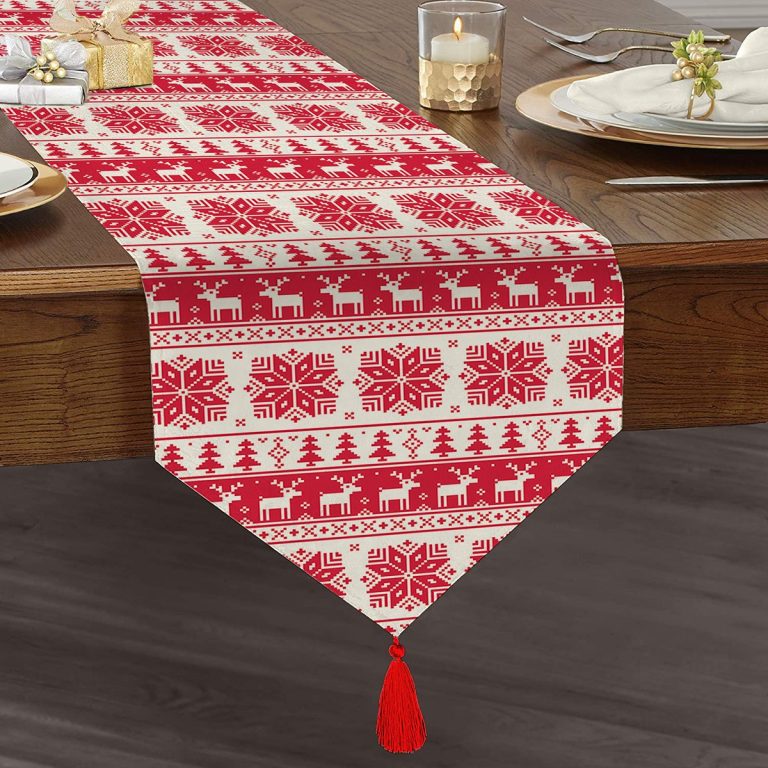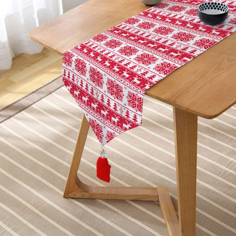 Kırmızı Beyaz Christmas Temalı Dijital Baskılı Modern Püsküllü Şönil Üçgen Runner