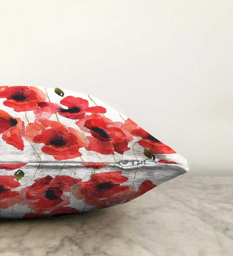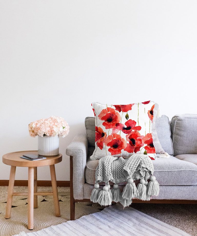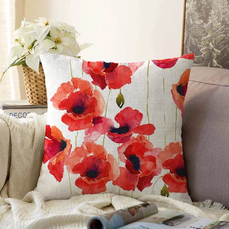 Kırmızı Çiçekli Dijital Baskılı Dekoratif Raşel Kırlent Kılıfı