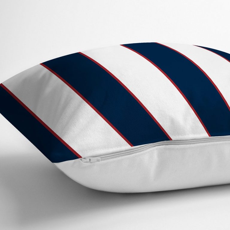 Kırmızı Detaylı Lacivert Beyaz Çizgili Yastık Kırlent Kılıfı