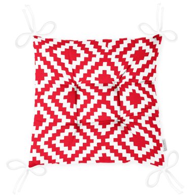 Kırmızı Geometrik Çizimli Dijital Baskılı Modern Pofidik Sandalye Minderi