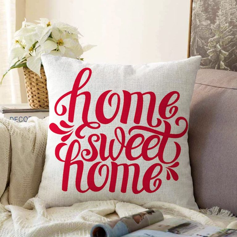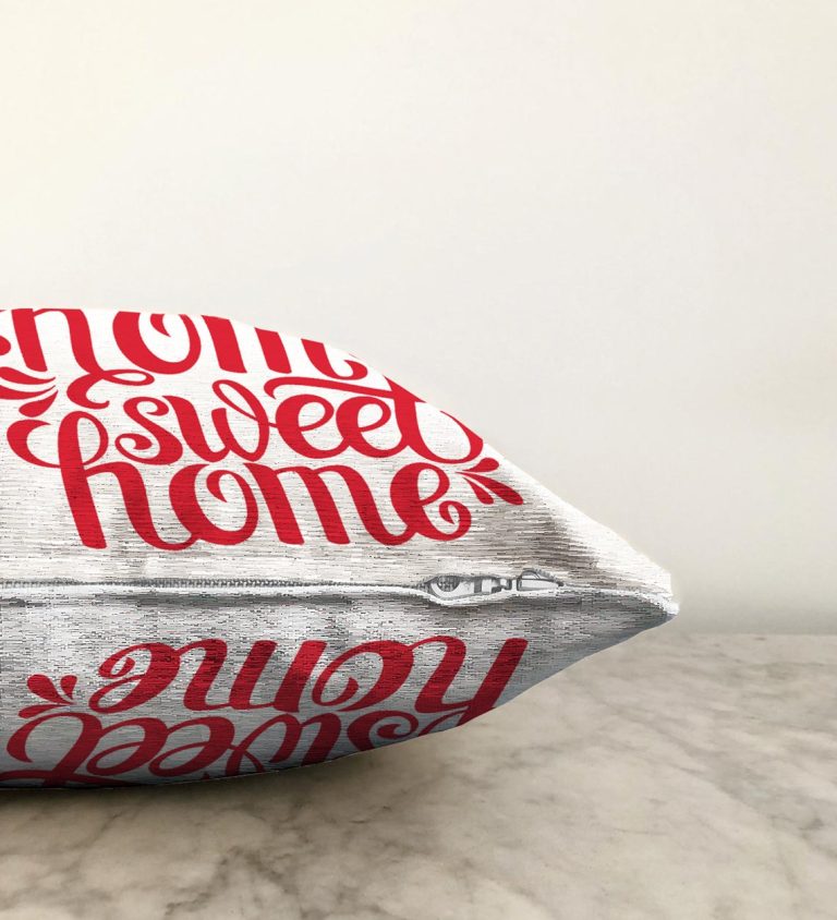 Kırmızı Home Sweet Home Dijital Modern Raşel Yastık Kırlent Kılıfı