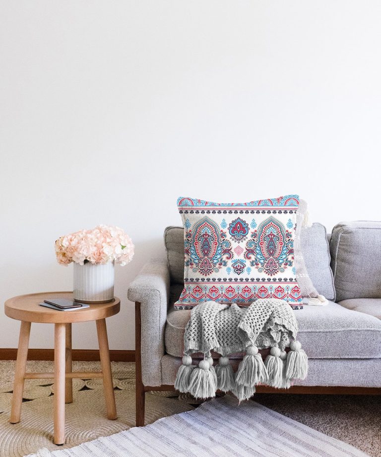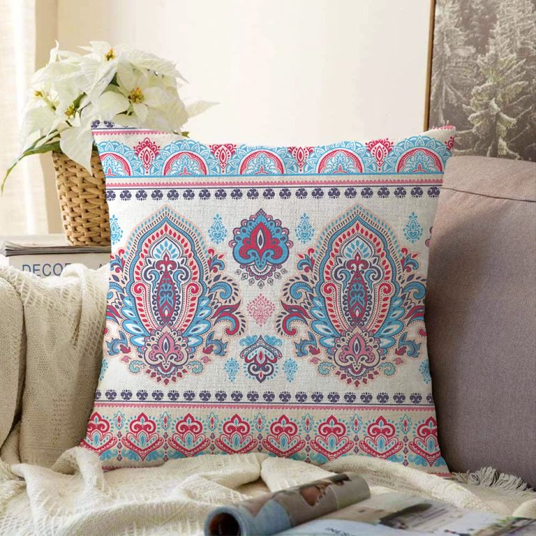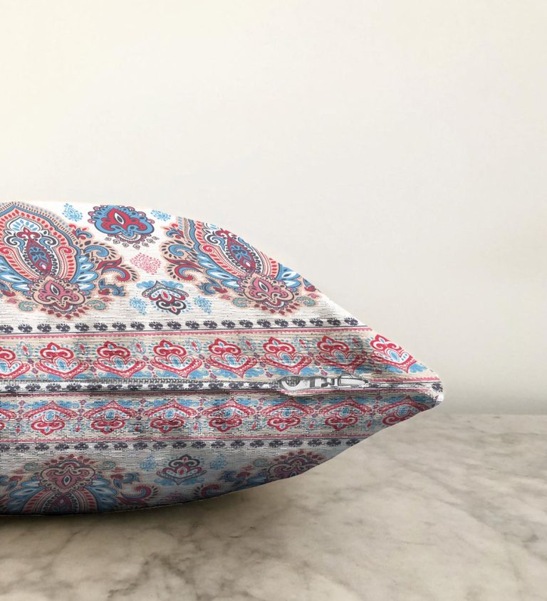 Kırmızı Mavi Çini Motifli Modern Dijital Baskılı Raşel Yastık Kılıfı