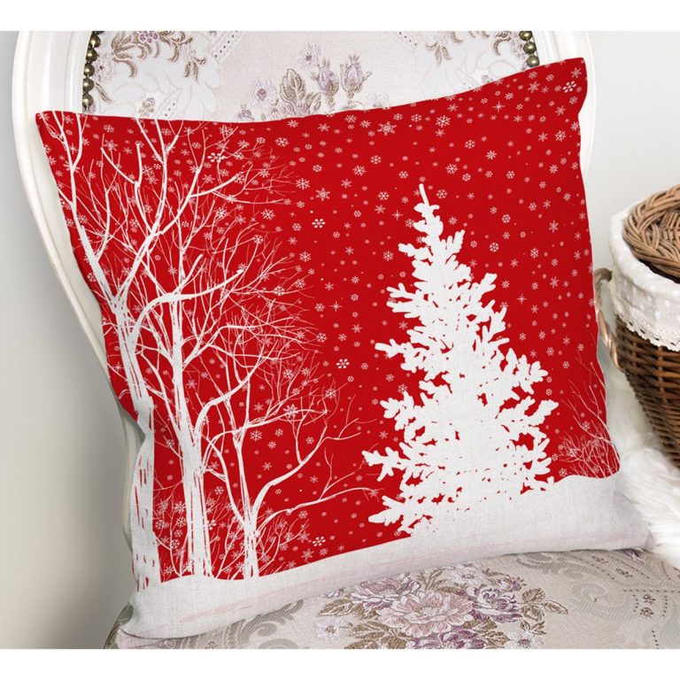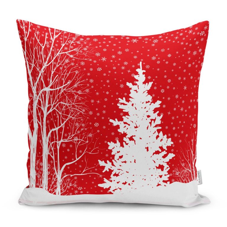 Kırmızı Renkli Yılbaşı Temalı Çam Ağacı Tasarımlı Modern Yastık Kırlent Kılıfı