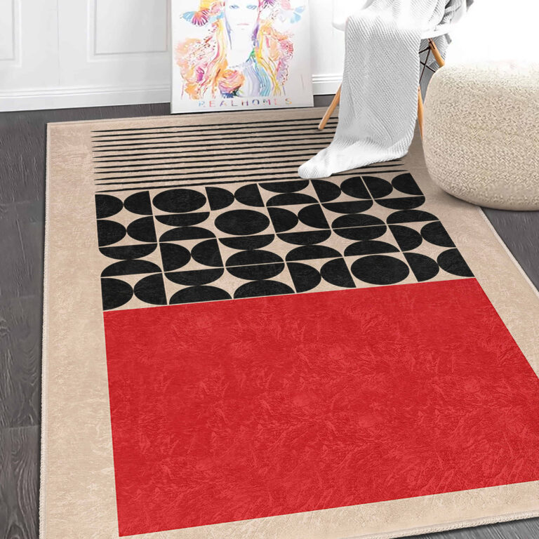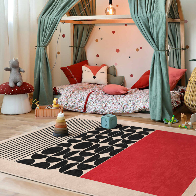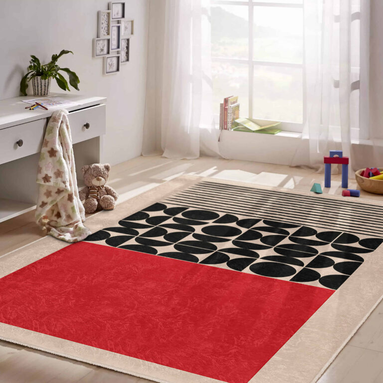 Kırmızı – Siyah Geometrik Desenli Çocuk Halısı | Yıkanabilir Kaymaz Tabanlı Dikdörtgen Halı