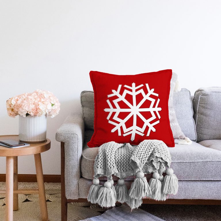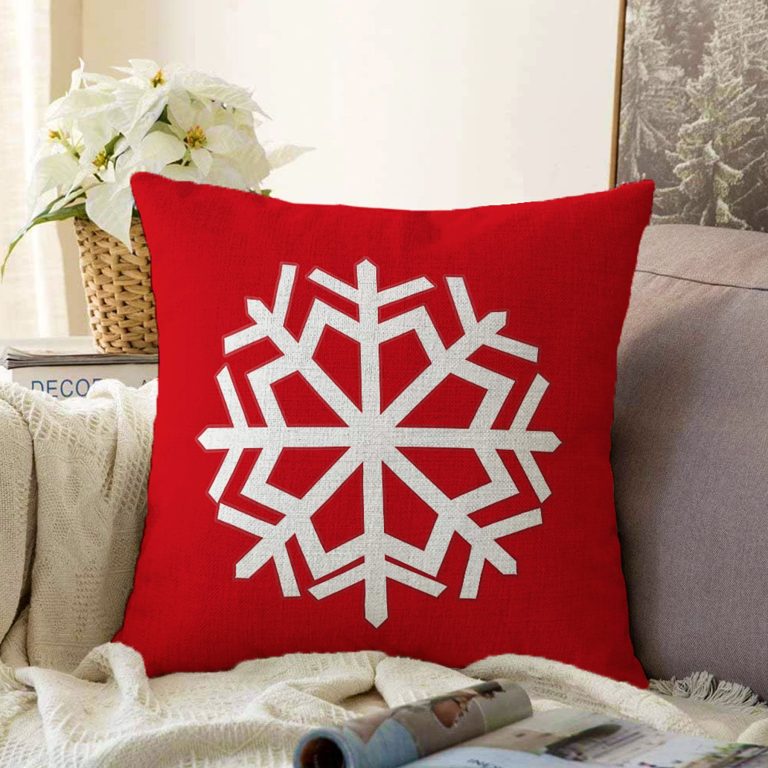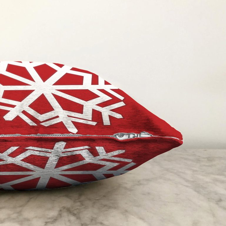 Kırmızı Tekli Kar Tanesi Yılbaşı Temalı Dekoratif Raşel Yastık Kırlent Kılıfı