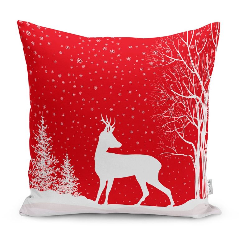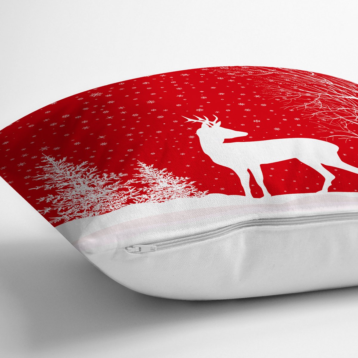 Kırmızı Yılbaşı Temalı Yeyik Tasarımlı Yastık Kırlent Kılıfı