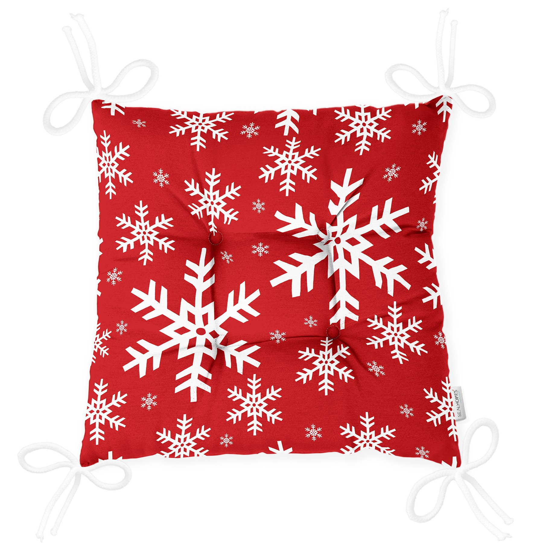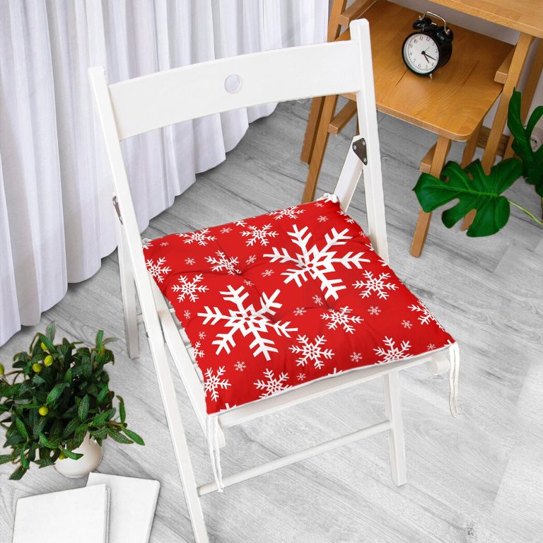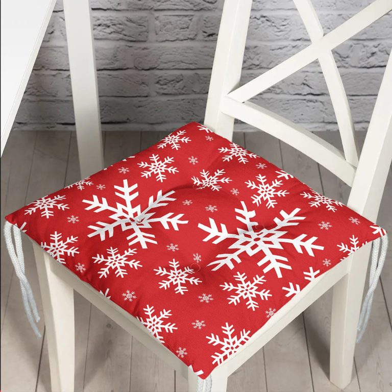 Kırmızı Zemin Kar Tanesi Özel Tasarım Yılbaşı Temalı Pofidik Sandalye Minderi