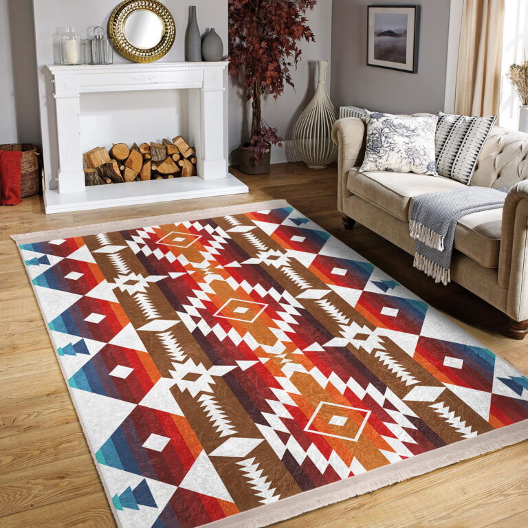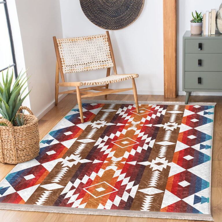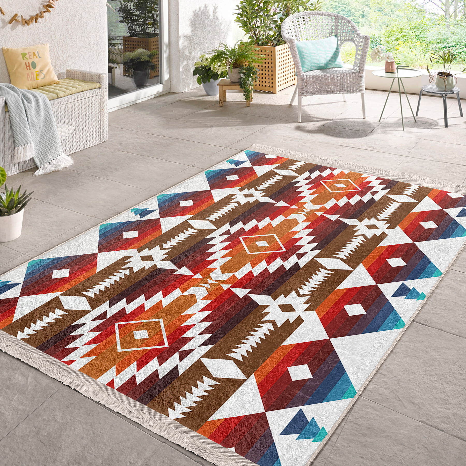 Kırmızı Zeminde Antik Motifli Geometrik Desenli Geometrik Etnik Motifler Koridor & Antre Dış Mekan & Outdoor Dijital Baskılı Makinede Yıkanabilir Kaymaz Taban Saçaklı Halı