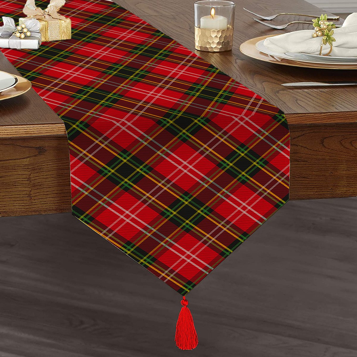 Kırmızı Zeminde Siyah Edkose Desenli Dekoratif Püsküllü Şönil Üçgen Runner