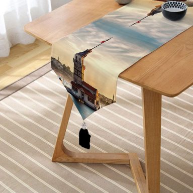 Kız Kulesi Dijital Baskılı Dekoratif Püsküllü Şönil Üçgen Runner