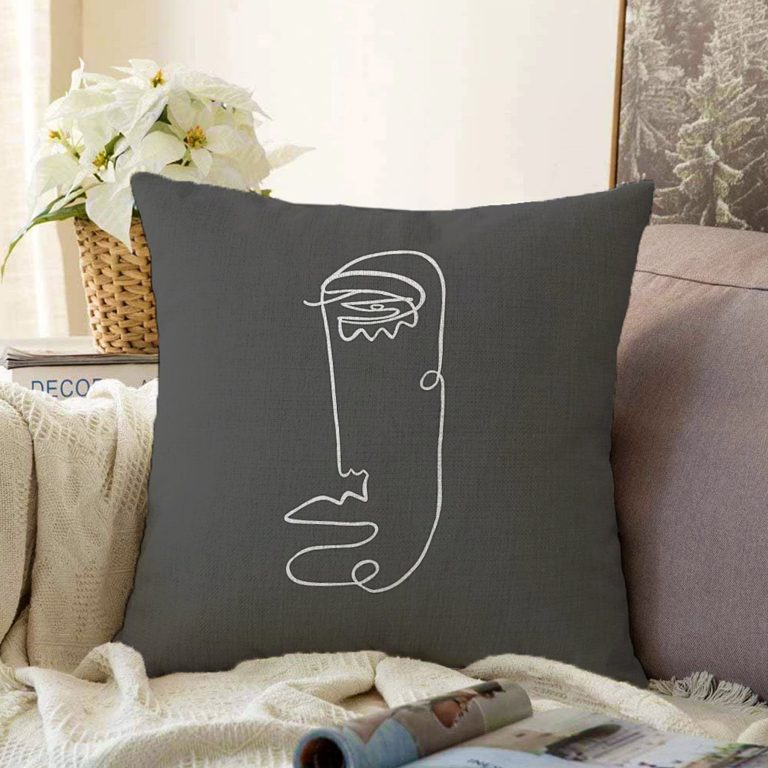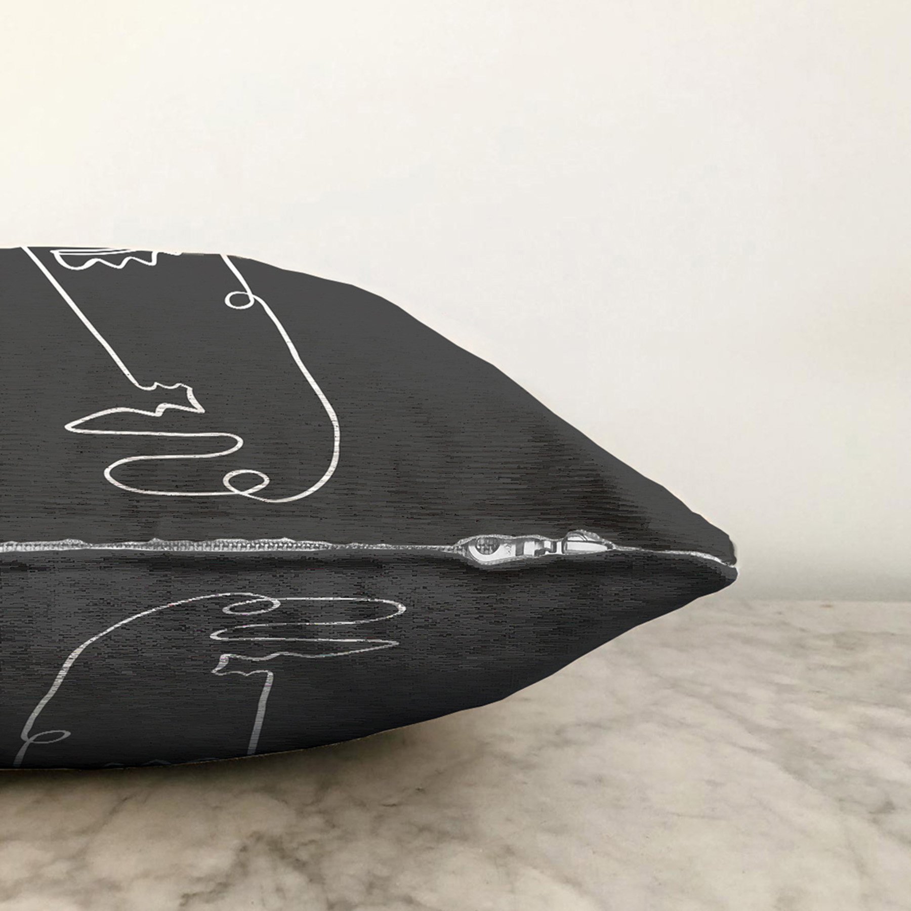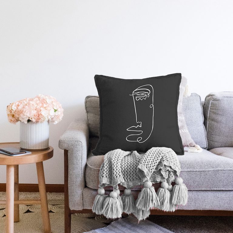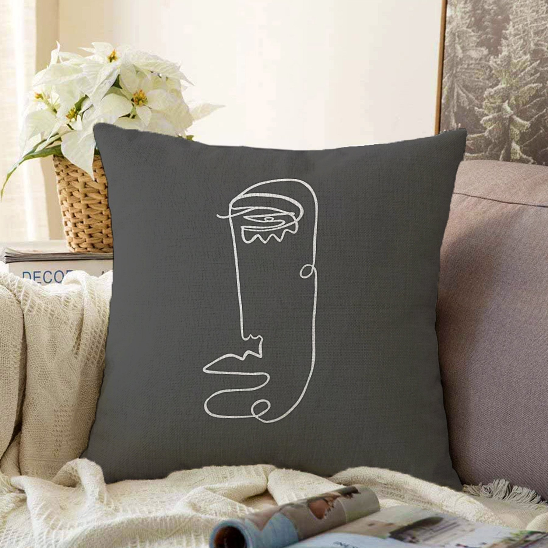 Koyu Füme Oneline Yüz Tasarımlı Raşel Yastık Kırlent Kılıfı
