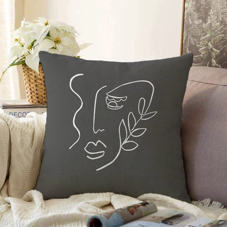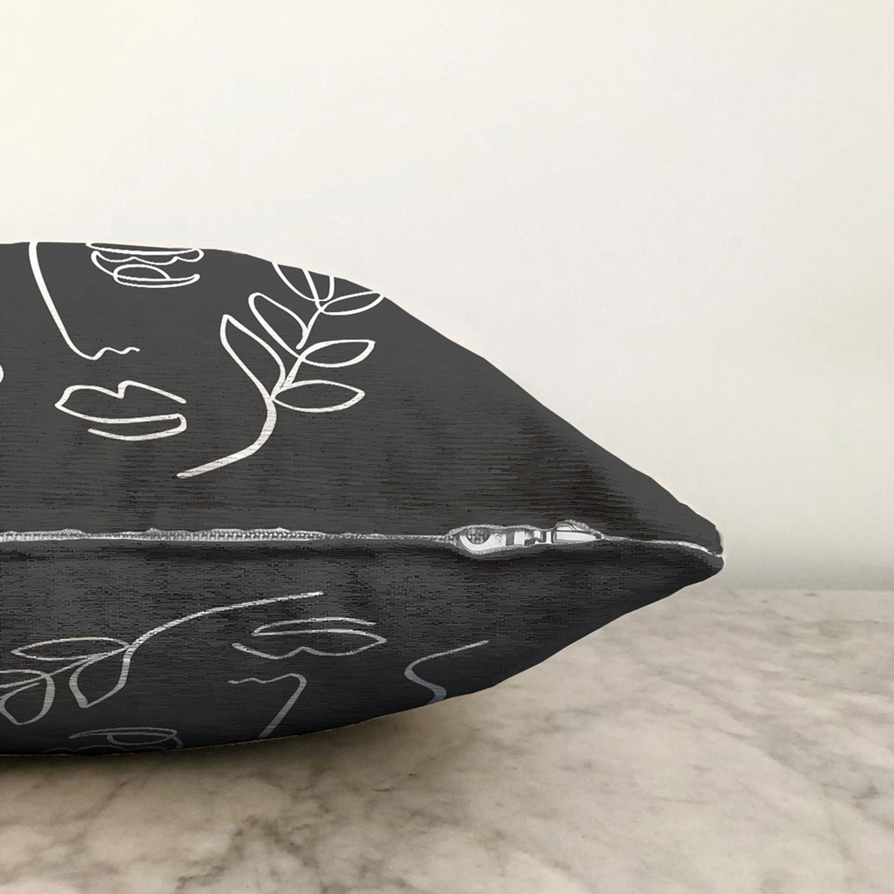 Koyu Füme Oneline Yüz Tasarımlı Raşel Yastık Kırlent Kılıfı