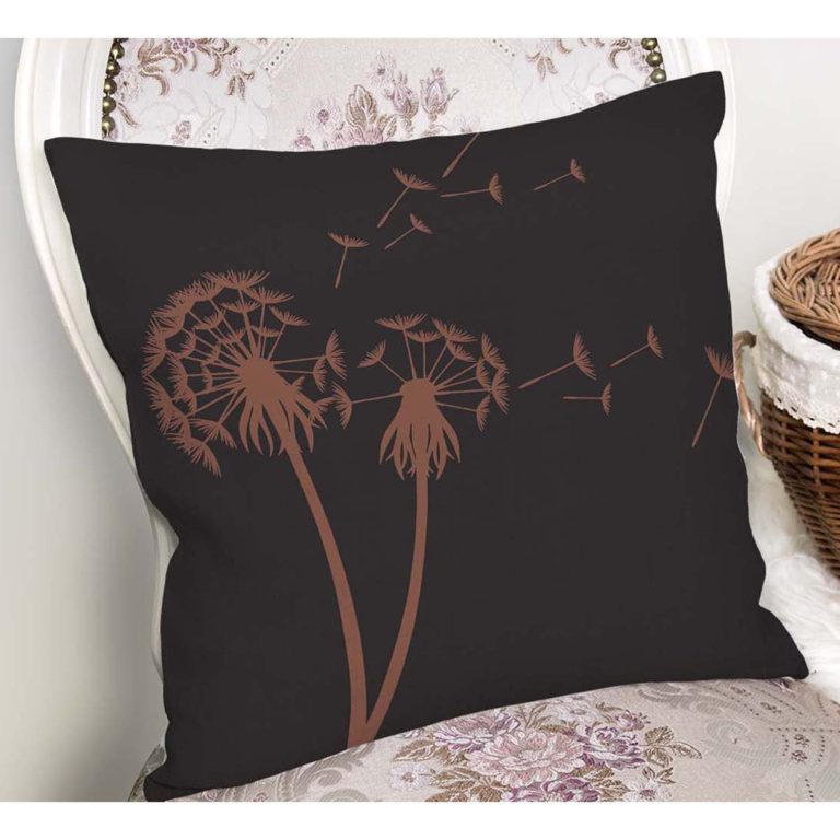 Koyu Zeminli Karahindiba Dijital Baskılı Yastık Kırlent Kılıfı
