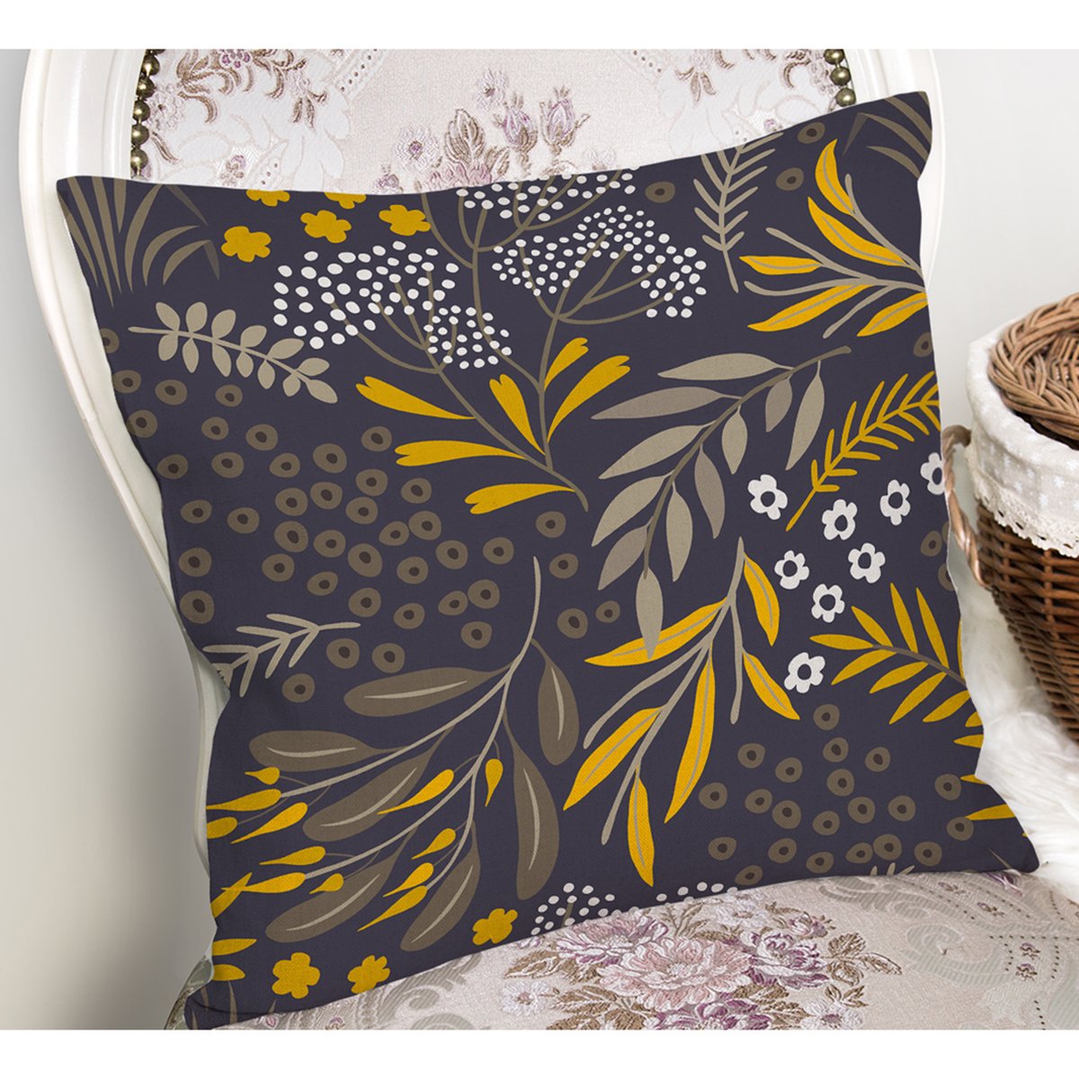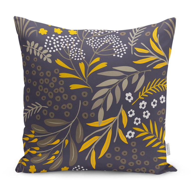 Koyu Zeminli Tropik Yaprak Motifli Dekoratif Yastık Kırlent Kılıfı