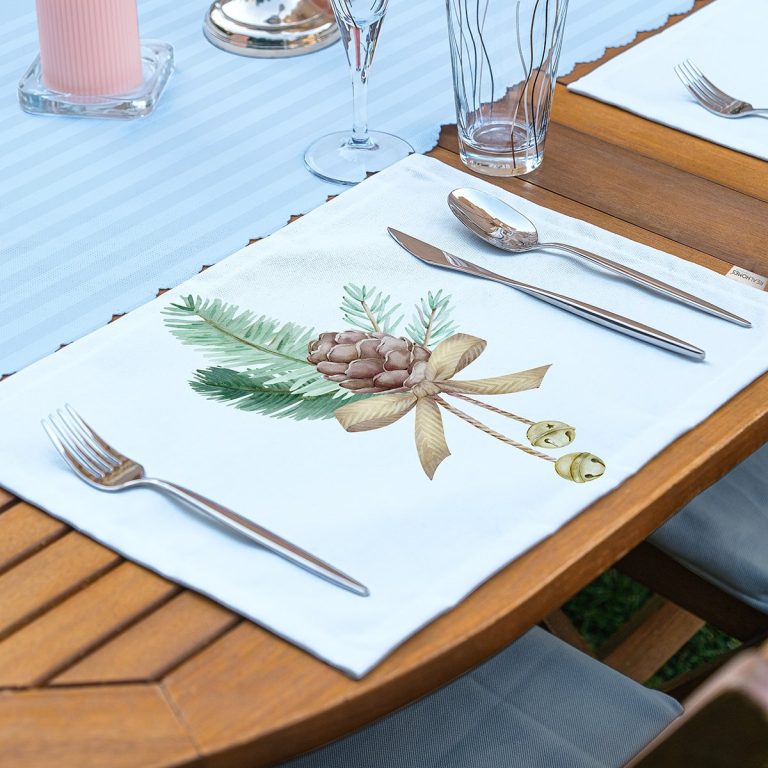 Kozalak Çizimli Cristmas Temalı Dijital Baskılı Modern Amerikan Servis