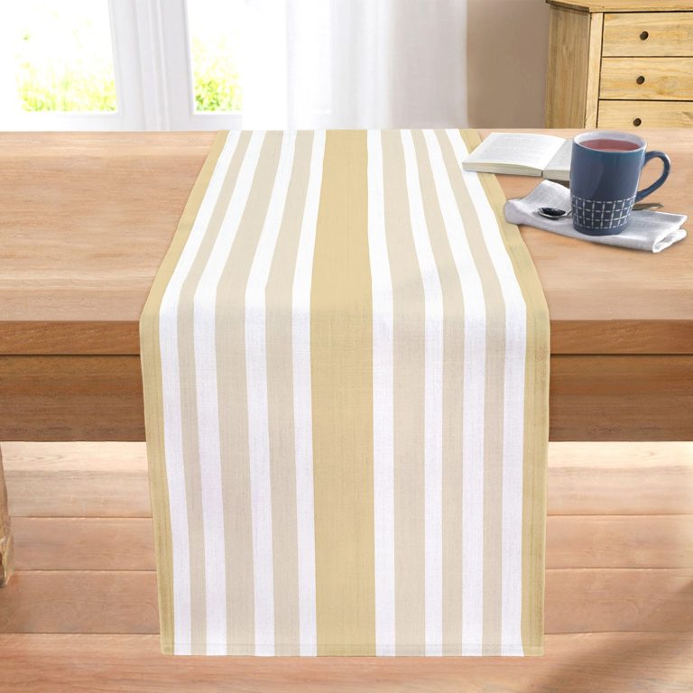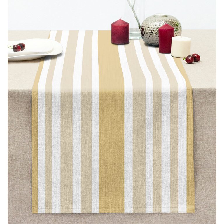 Krem Beyaz Düz Çizgili Özel Tasarım Dekoratif Dikişli Şönil Runner
