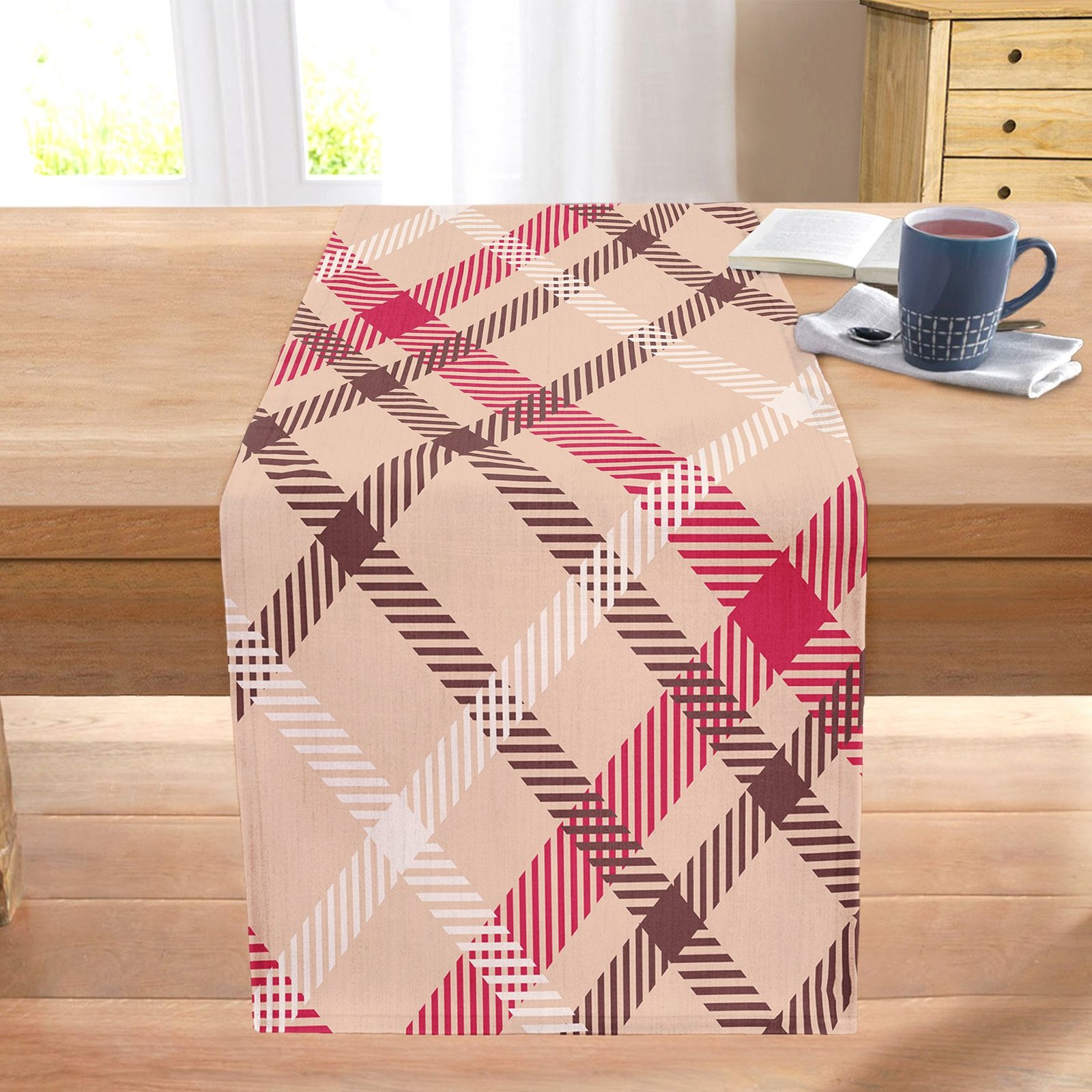 Krem Zemin Çizgili Dijital Baskılı Modern Dikişli Şönil Runner