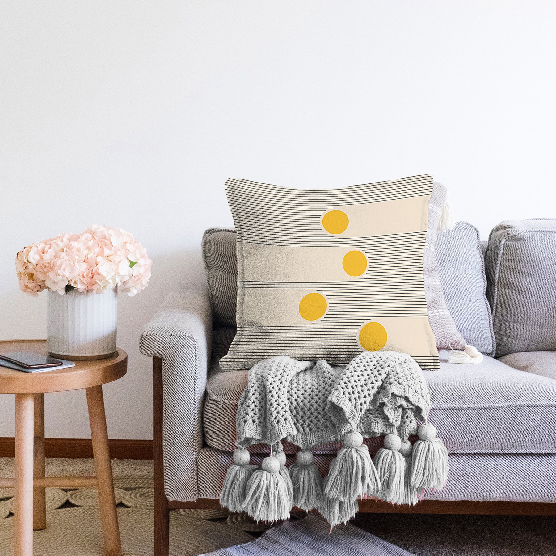 Krem Zemin Çizgili Tasarımlı Modern Raşel Yastık Kırlent Kılıfı
