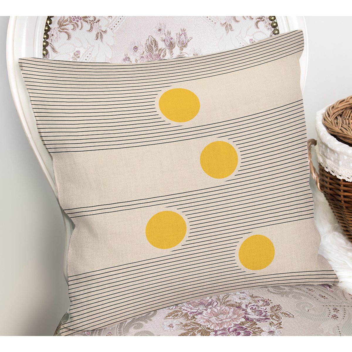 Krem Zemin Çizgili Tasarımlı Modern Yastık Kırlent Kılıfı