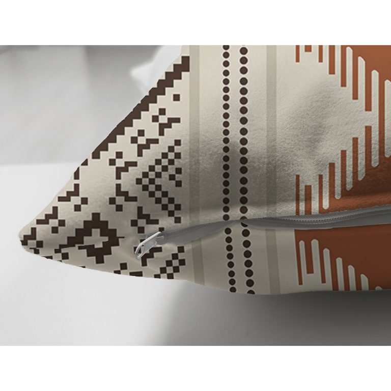 Krem Zemin Etnik Tasarımlı Dijital Baskılı Modern Süet Yastık Kırlent Kılıfı