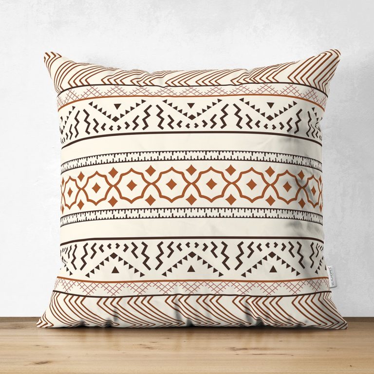 Krem Zemin Etnik Tasarımlı Dijital Baskılı Modern Süet Yastık Kırlent Kılıfı