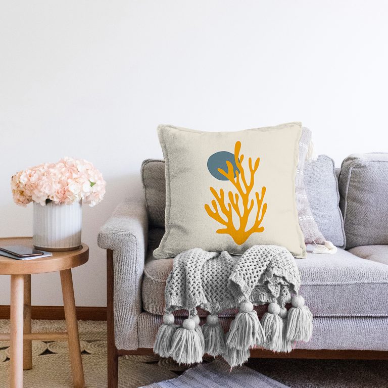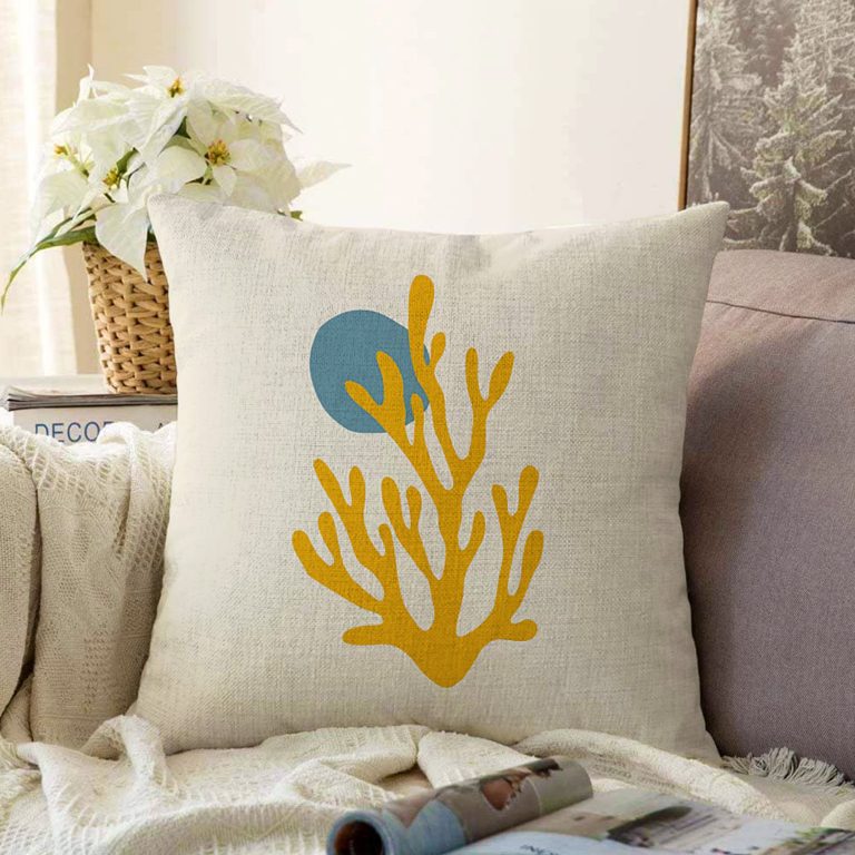 Krem Zemin Yosun Tasarımlı Dijital Baskılı Raşel Yastık Kırlent Kılıfı