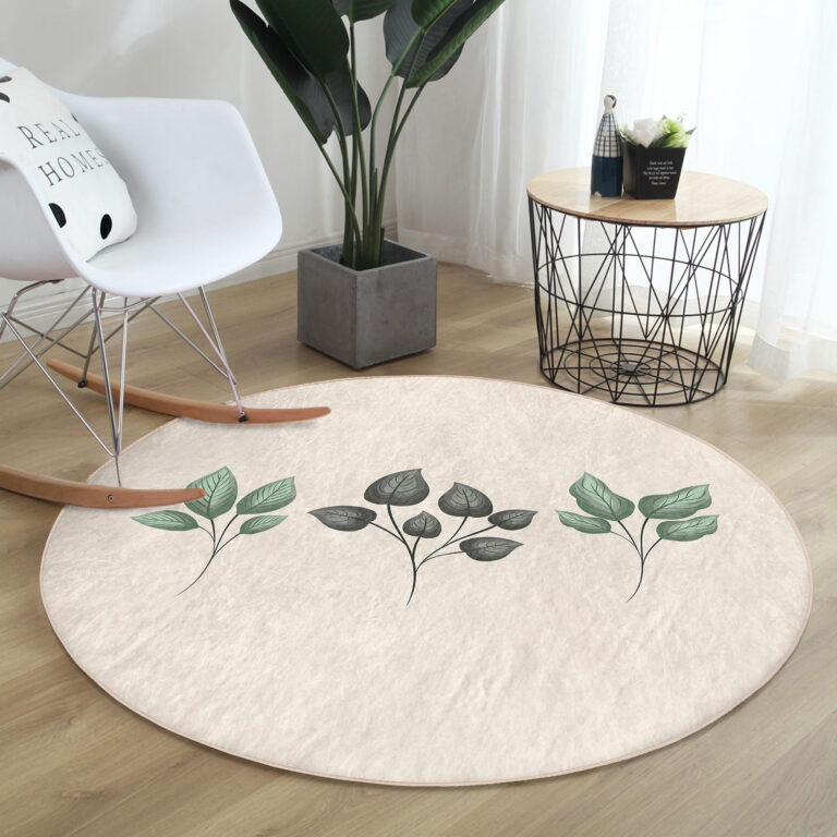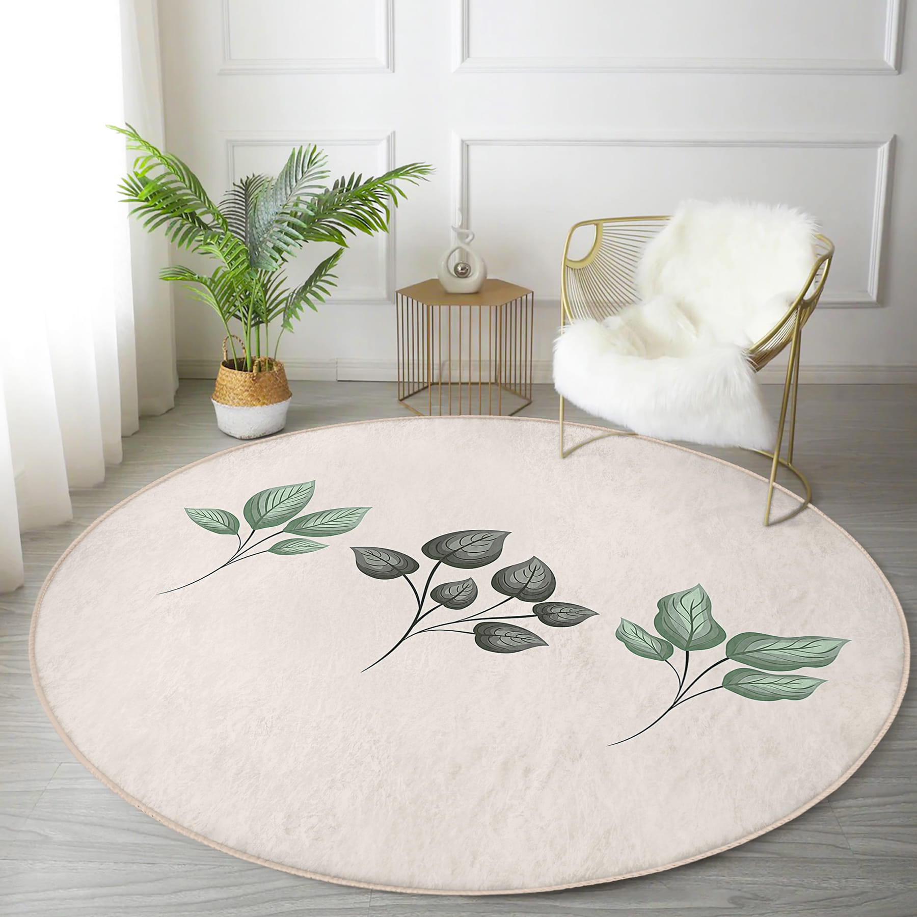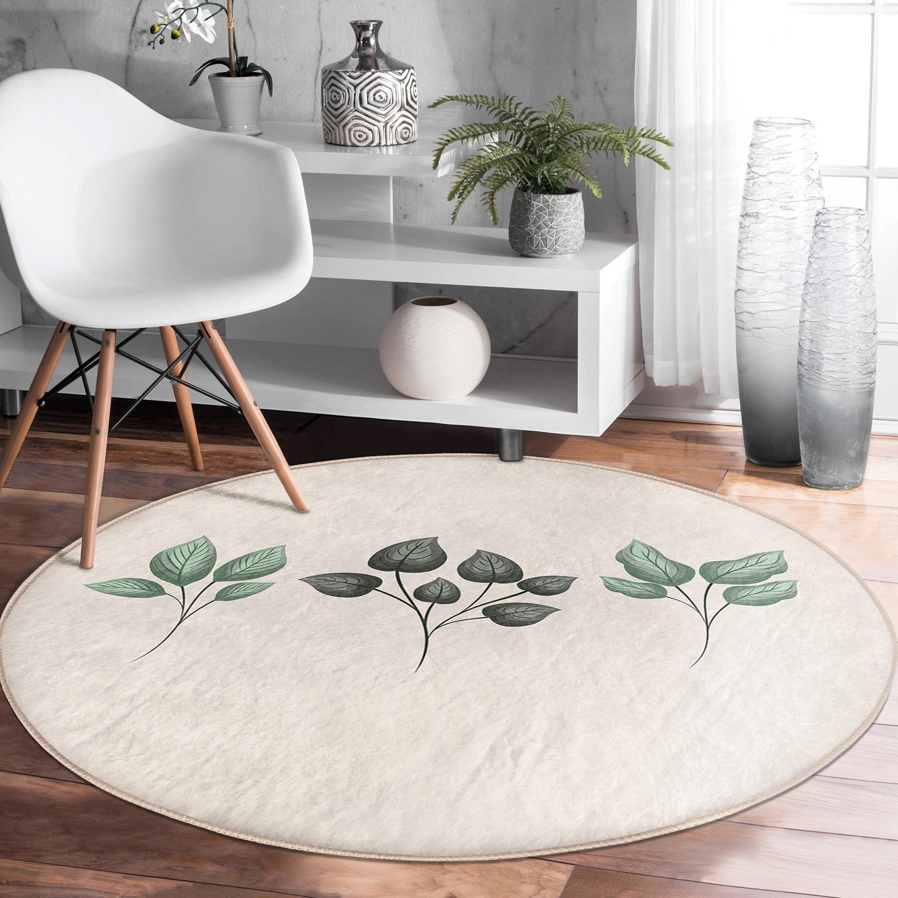 Krem Zeminli Çiçek Tasarımlı Dijital Baskılı Renkli Mutfak Yıkanabilir Kaymaz Tabanlı Yuvarlak Halı