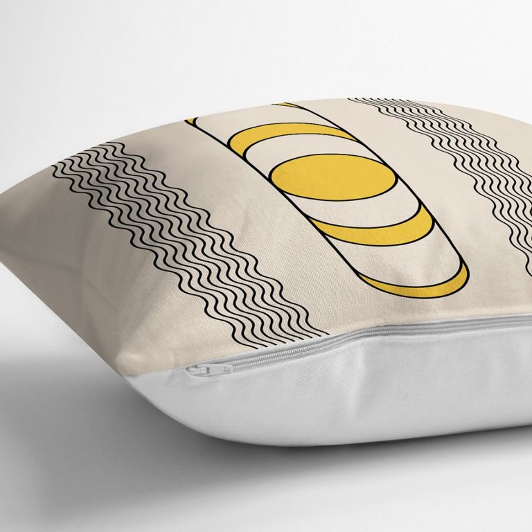 Krem Zeminli İskandinav Motifli Çizim Dekoratif Yastık Kırlent Kılıfı