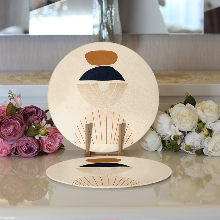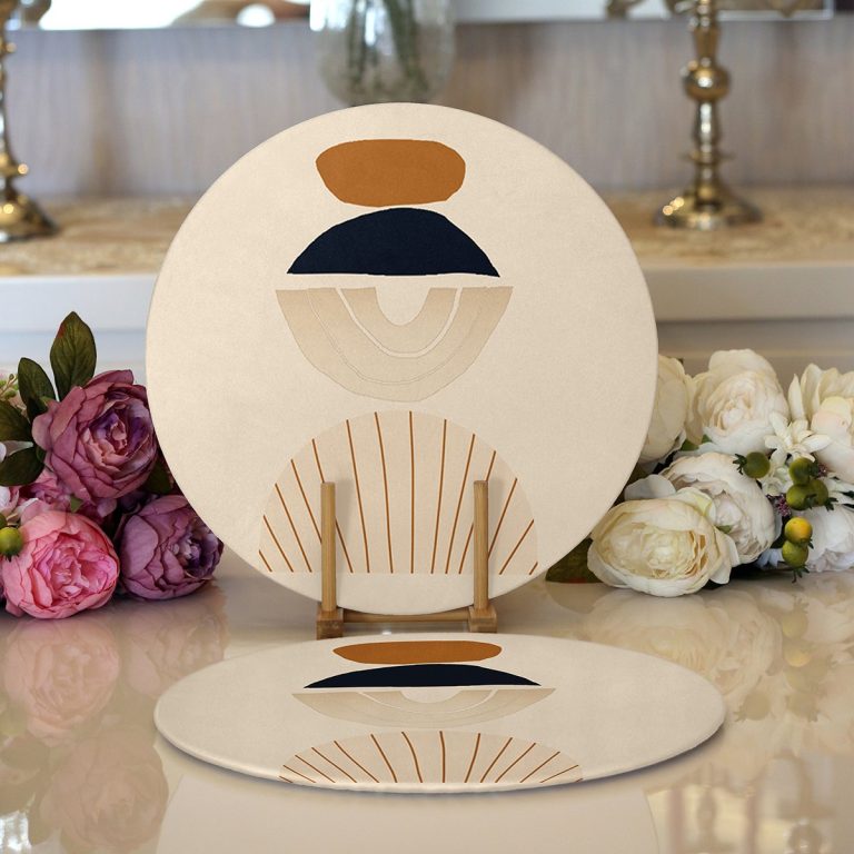 Krem Zeminli Minimalist Tasarımlı Dijital Baskılı Dekoratif Yuvarlak Servis Altlığı – Supla