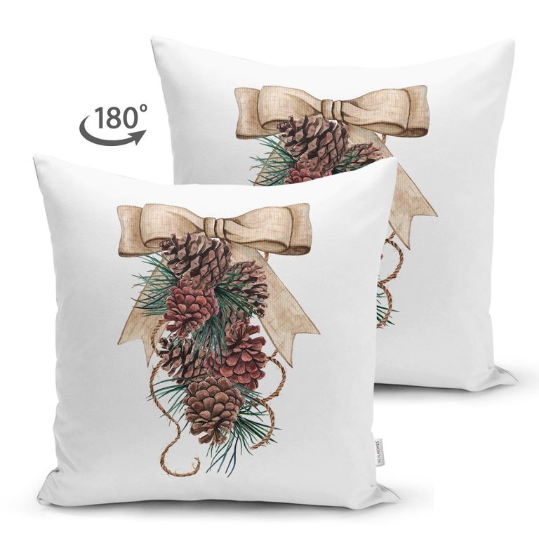 Kurdaleli Kozalak Motifli Dijital Baskılı Dekoratif Süet Yastık Kırlent Kılıfı