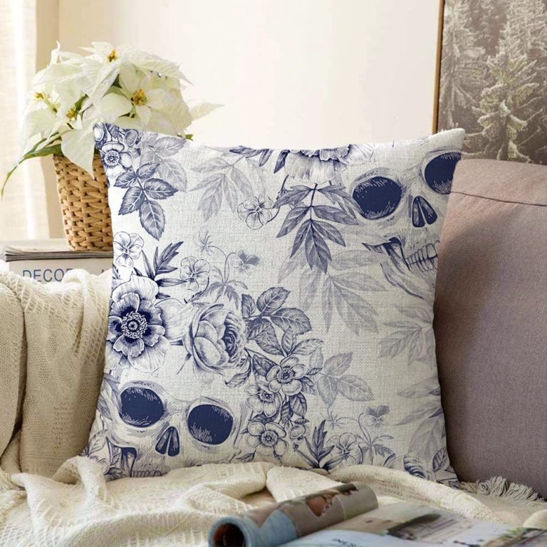 Kurukafa ve Çiçekler Motifli Dekoratif Raşel Yastık Kırlent Kılıfı