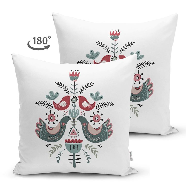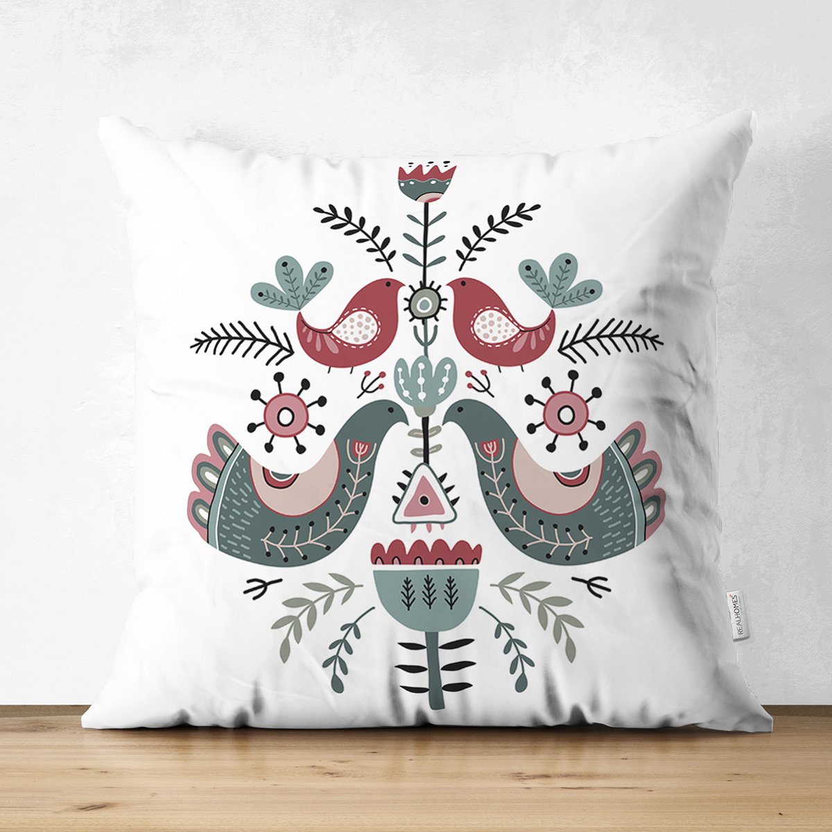 Kuş & Çiçek Motifli Dijital Baskılı Modern Süet Yastık Kırlent Kılıfı