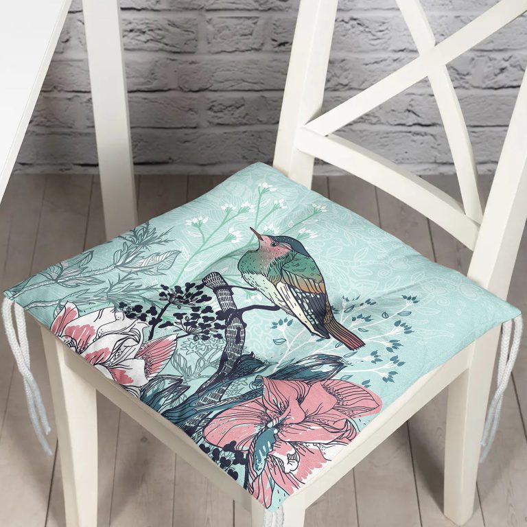 Kuş Motifli Dijital Baskılı Modern Pofidik Sandalye Minderi