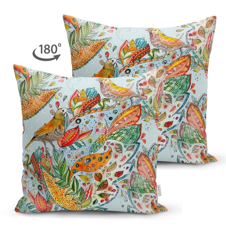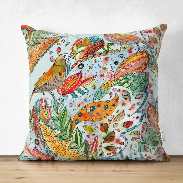 Kuş motifli Dijital Baskılı Modern Süet Yastık Kırlent Kılıfı