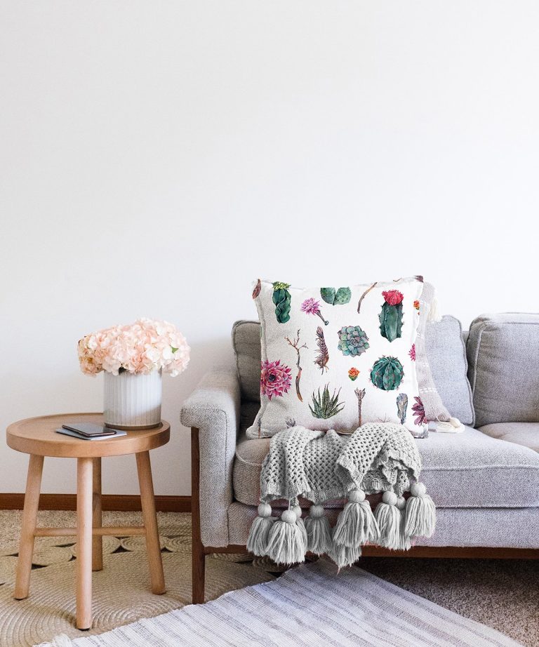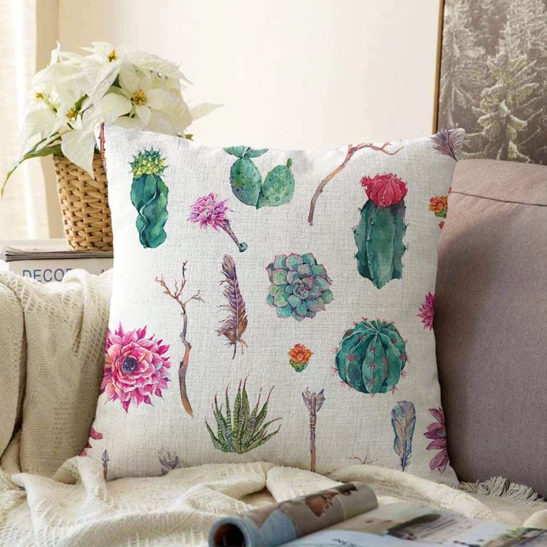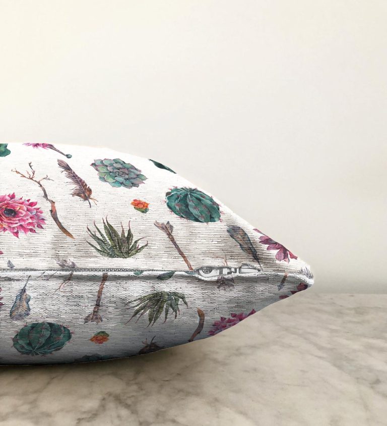 Kuş Tüyü Motifli Çöl Bitkisi Desenli Modern Dijital Baskılı Raşel Kırlent Kılıfı