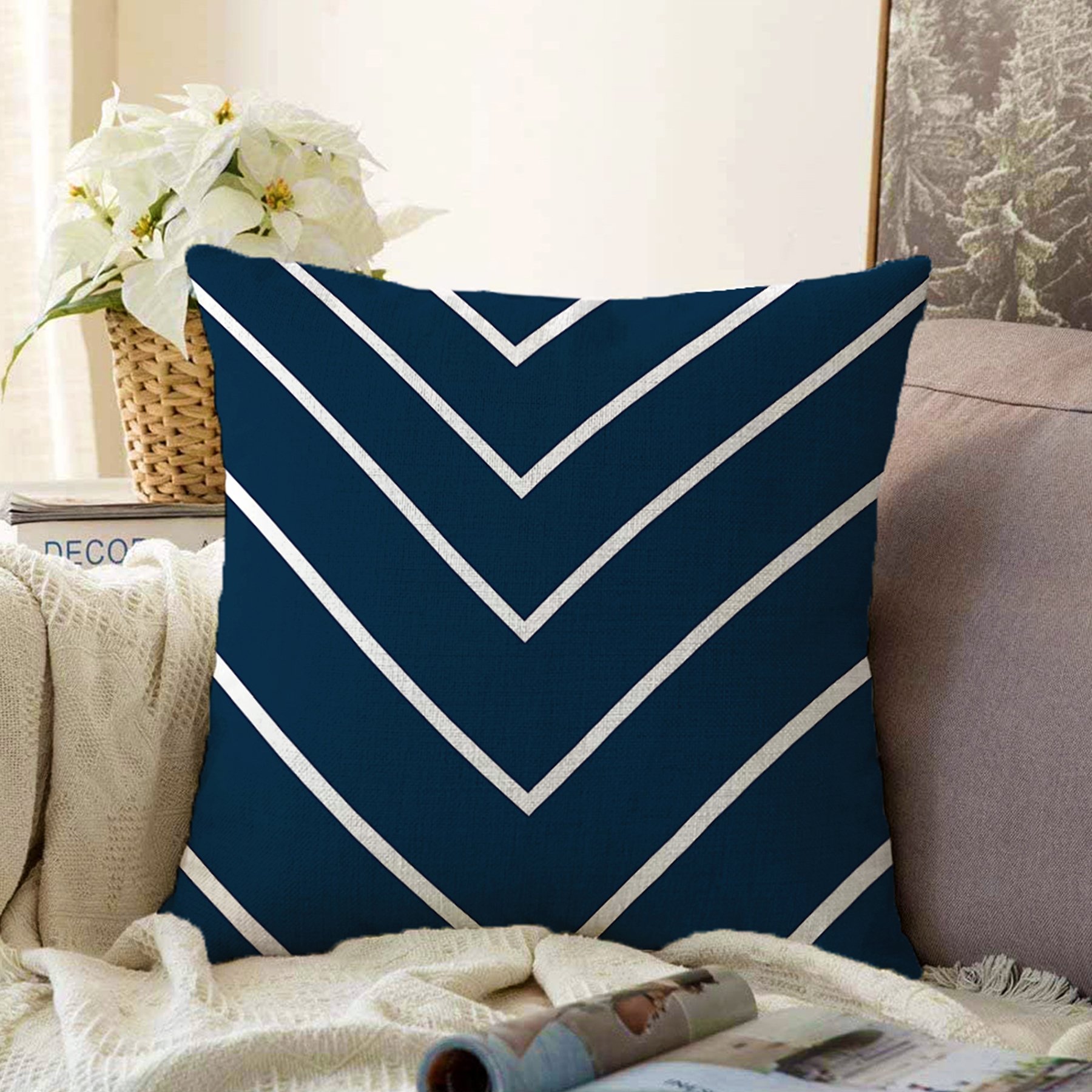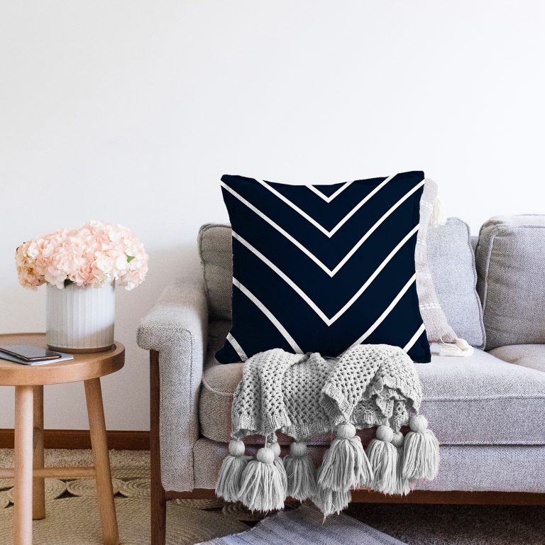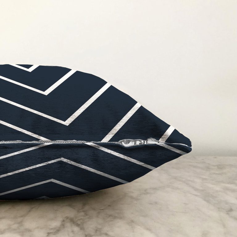 Lacivert Beyaz Çizgili Tasarım Dekoratif Raşel Yastık Kırlent Kılıfı