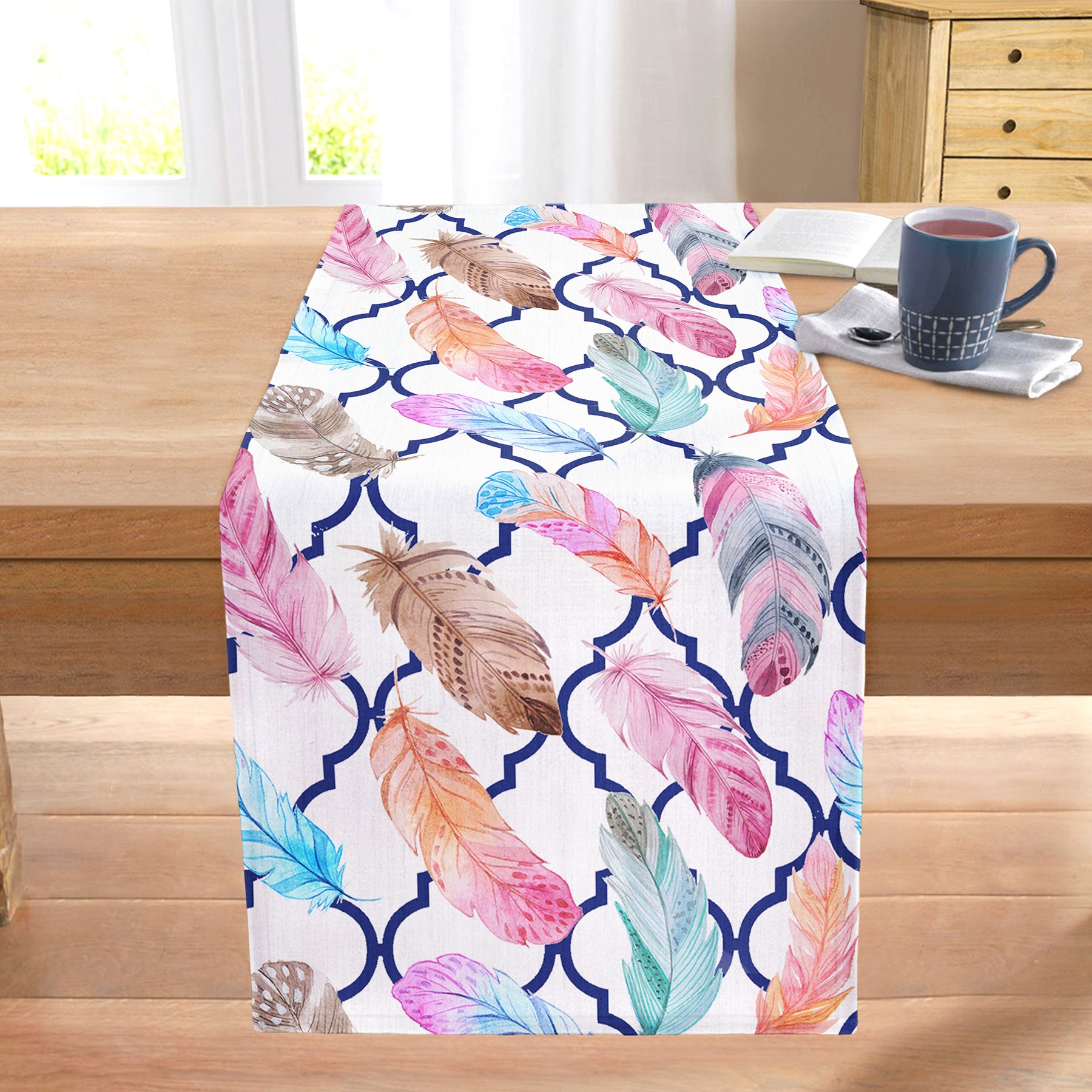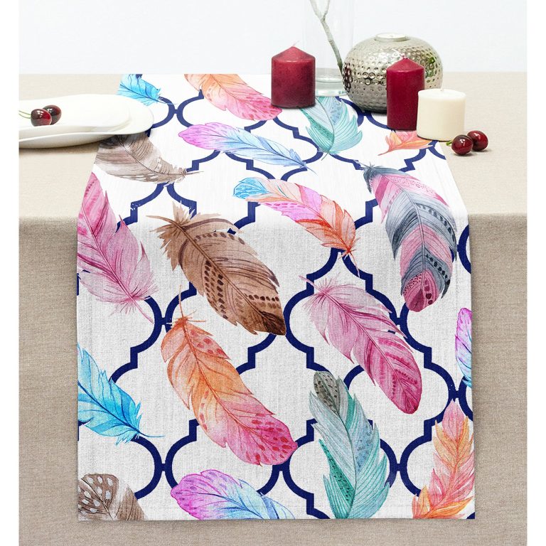 Lacivert Ogea Renkli Gül Motifli Dijital Baskılı Dikişli Şönil Runner