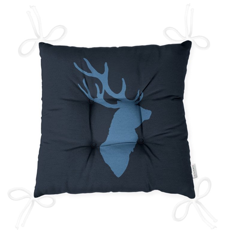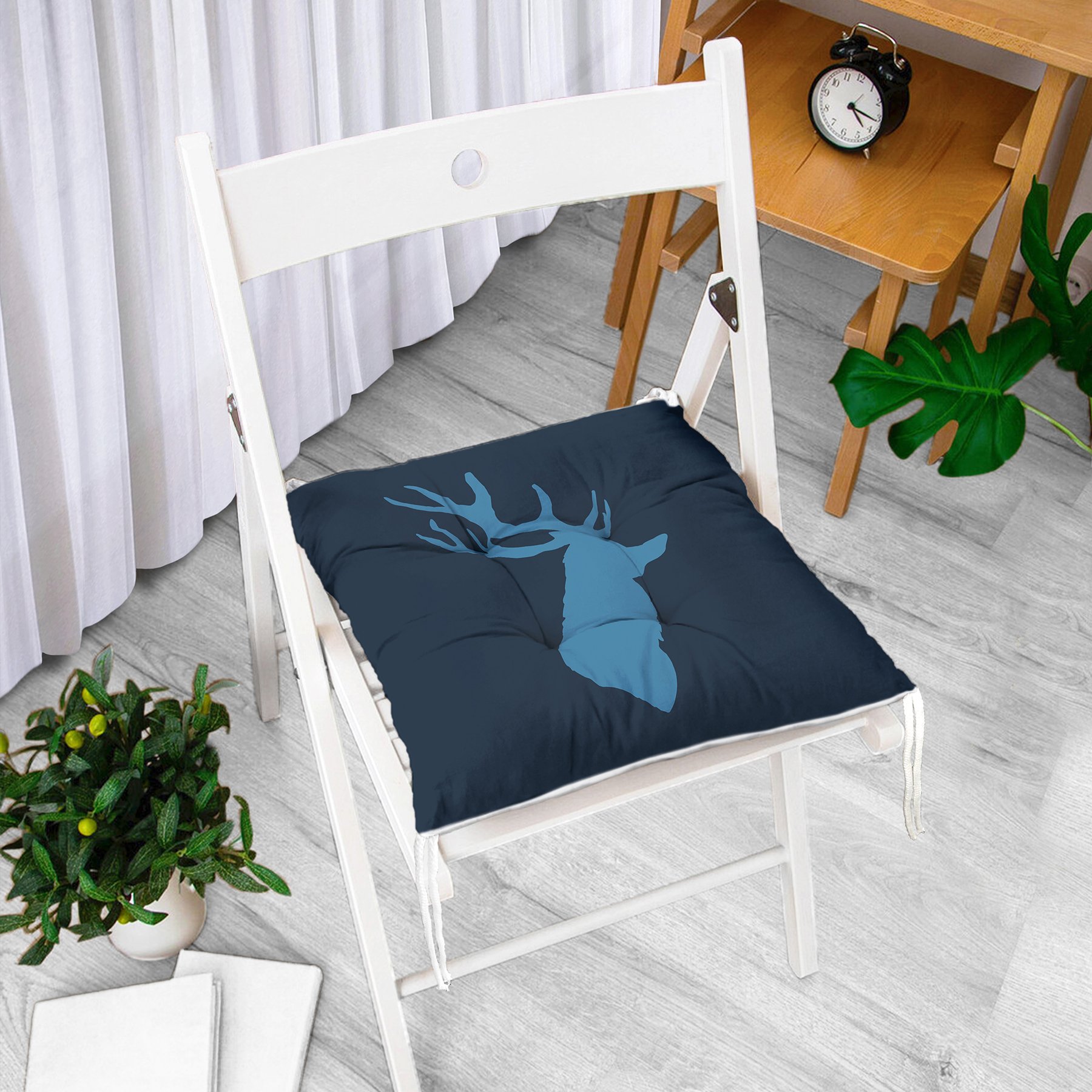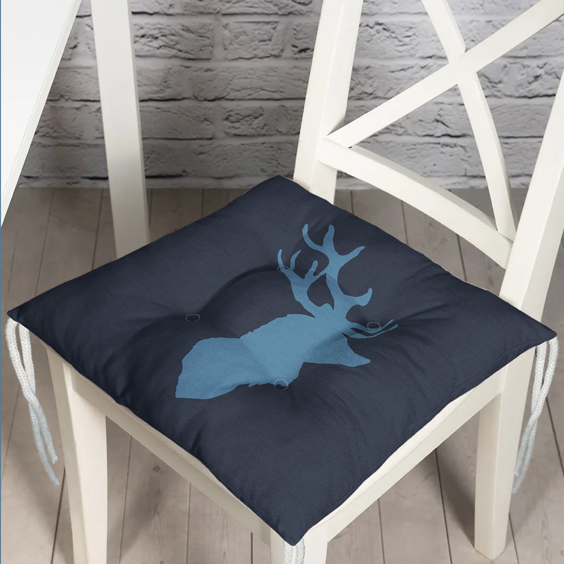 Lacivert Zemin Mavi Geyik Tasarımlı Modern Pofidik Sandalye Minderi