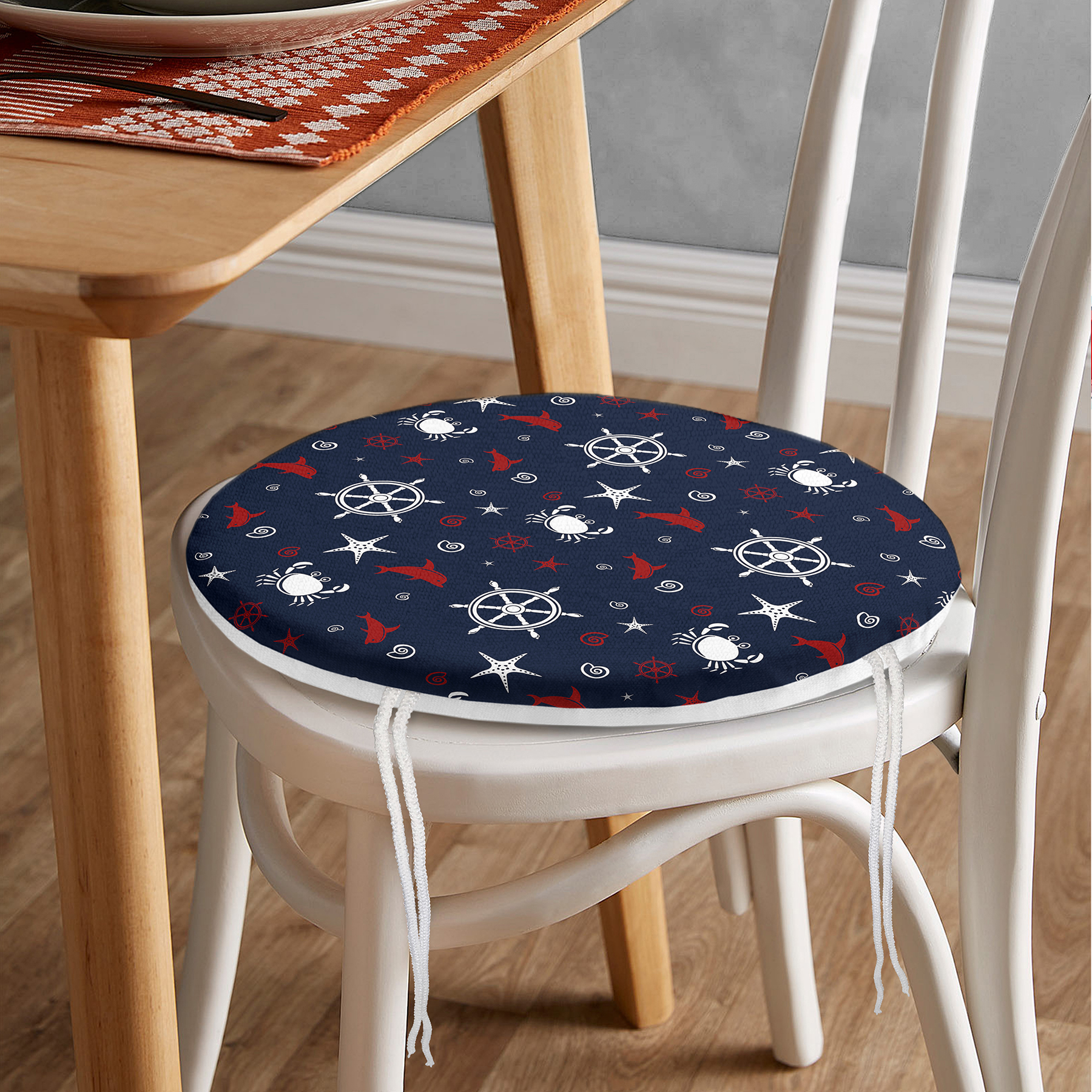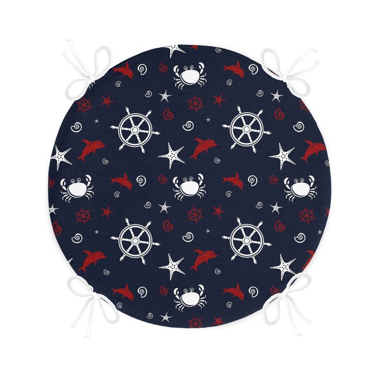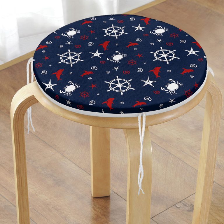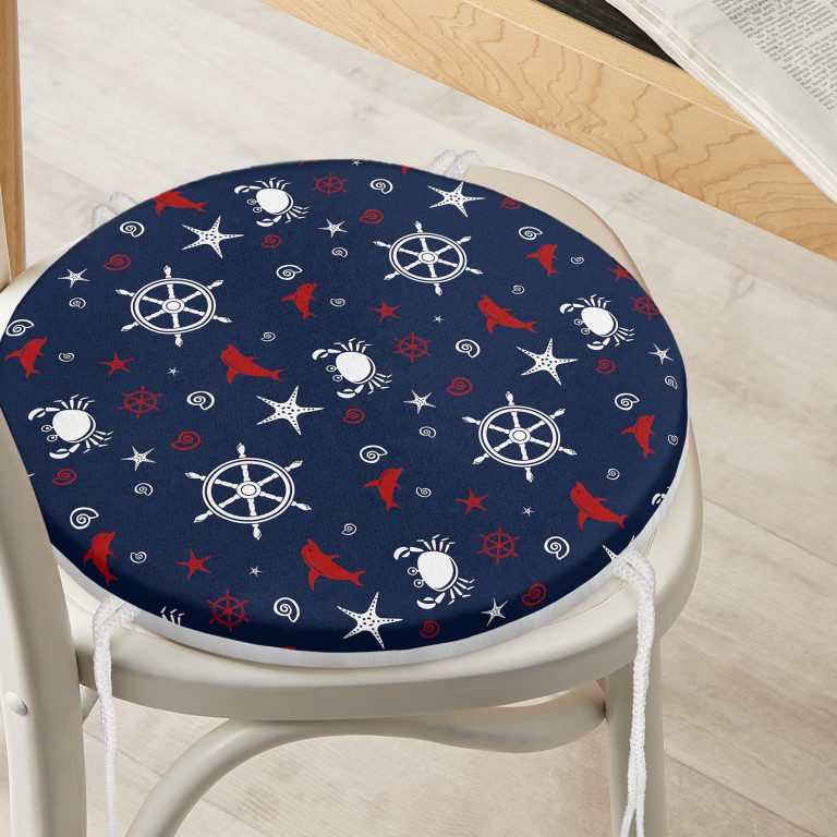 Lacivert Zeminli Renkli Yunus Desenli Dijital Baskılı Modern Yuvarlak Fermuarlı Sandalye Minderi