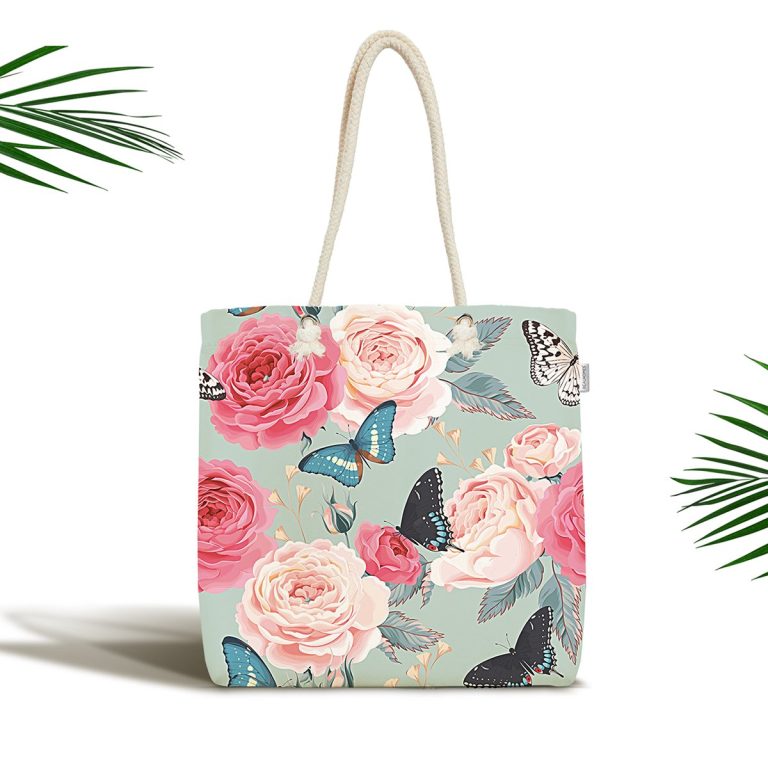 Lekeli Kelebekler Çizimli Fermuarlı Plaj Çantası