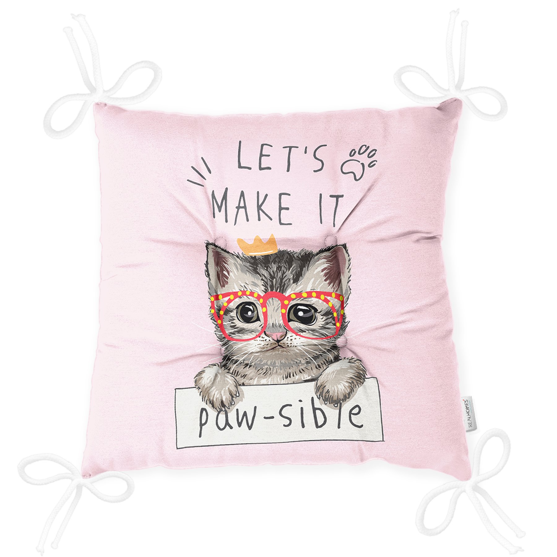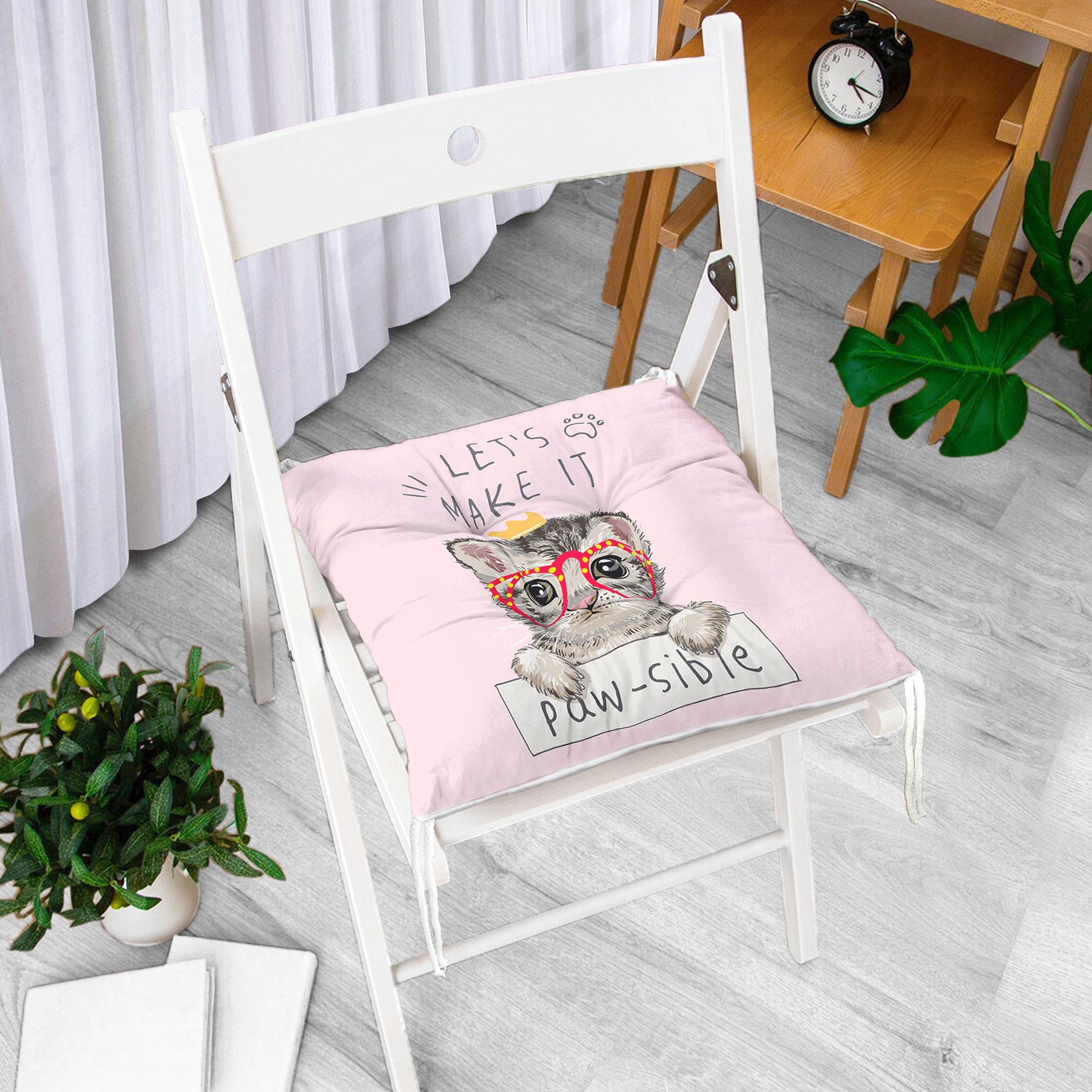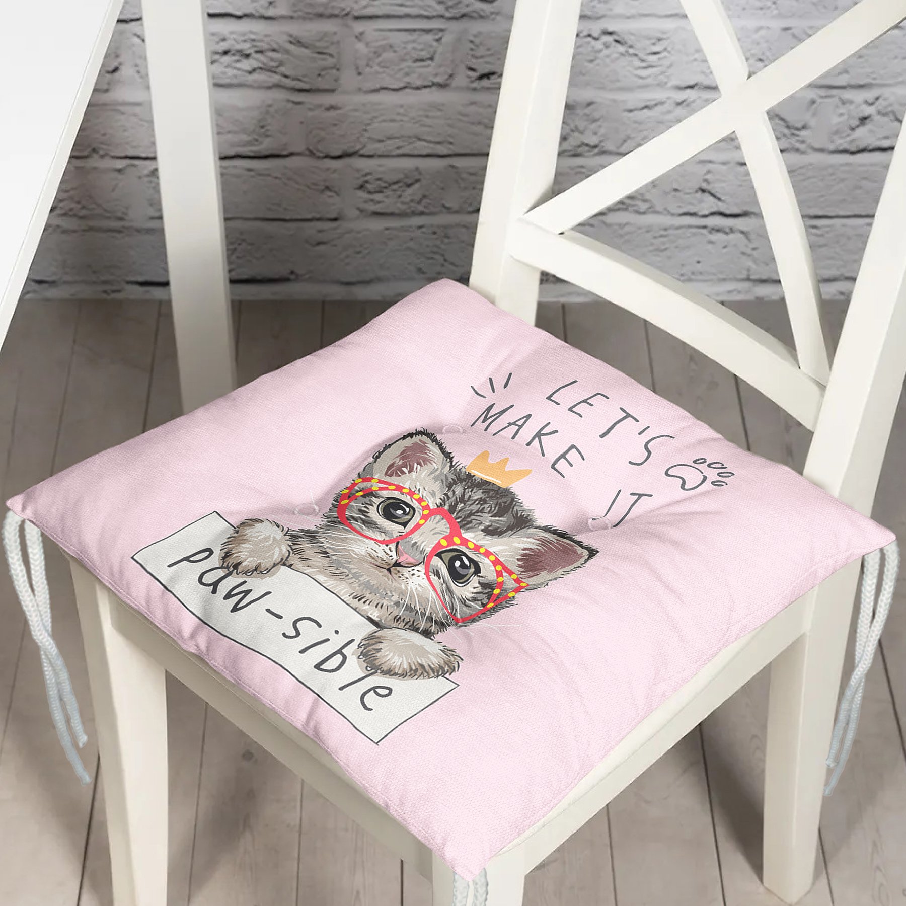 Let’s Make It Kedi Desenli Modern Pofidik Sandalye Minderi