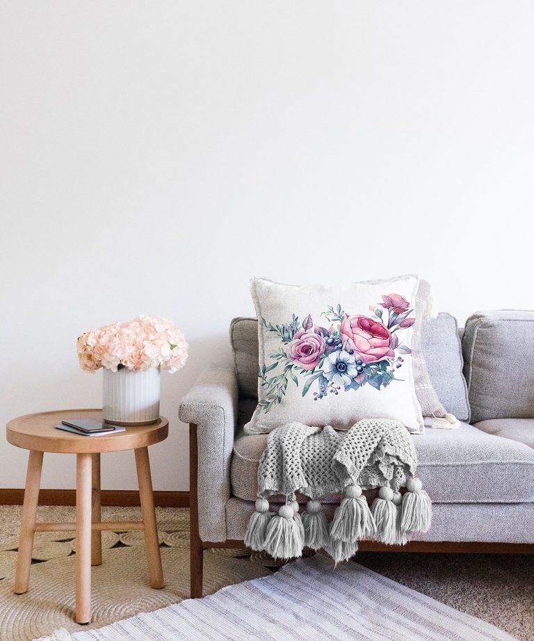 Lila Renk Begonya Motifli Dijital Baskılı Raşel Yastık Kırlent Kılıfı