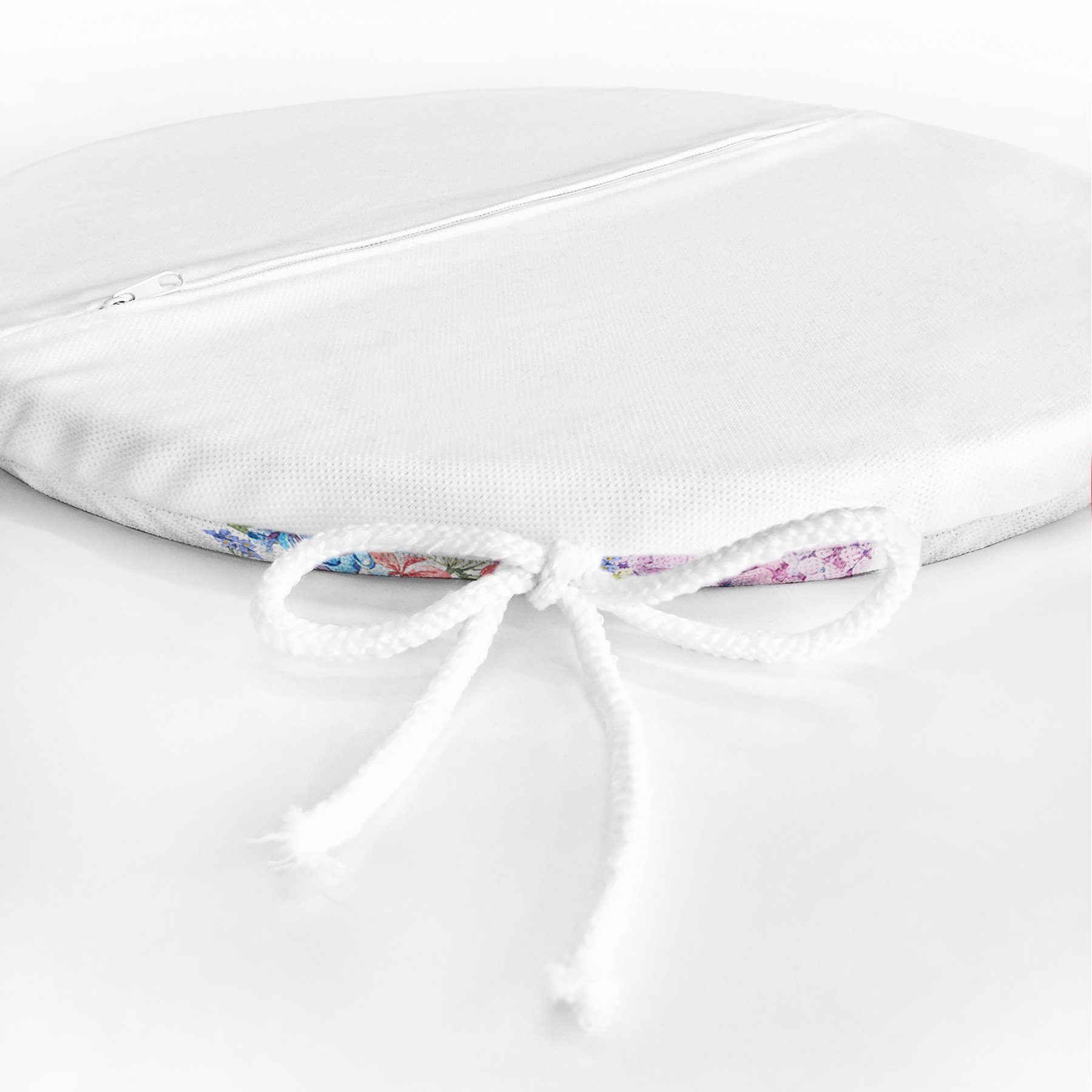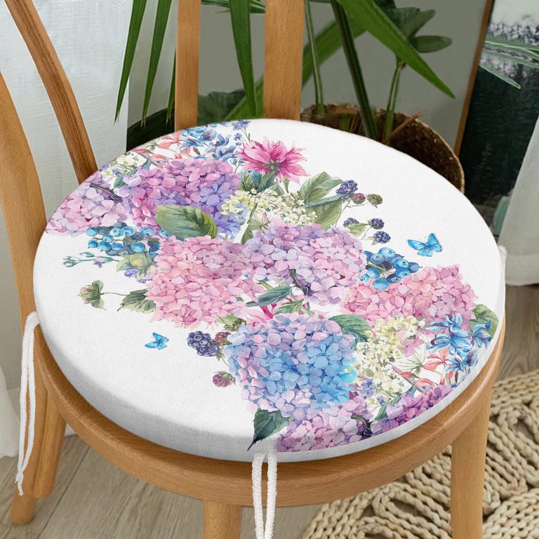 Lila Renk Salkım Zambak Desenli Dijital Baskılı Yuvarlak Fermuarlı Sandalye Minderi