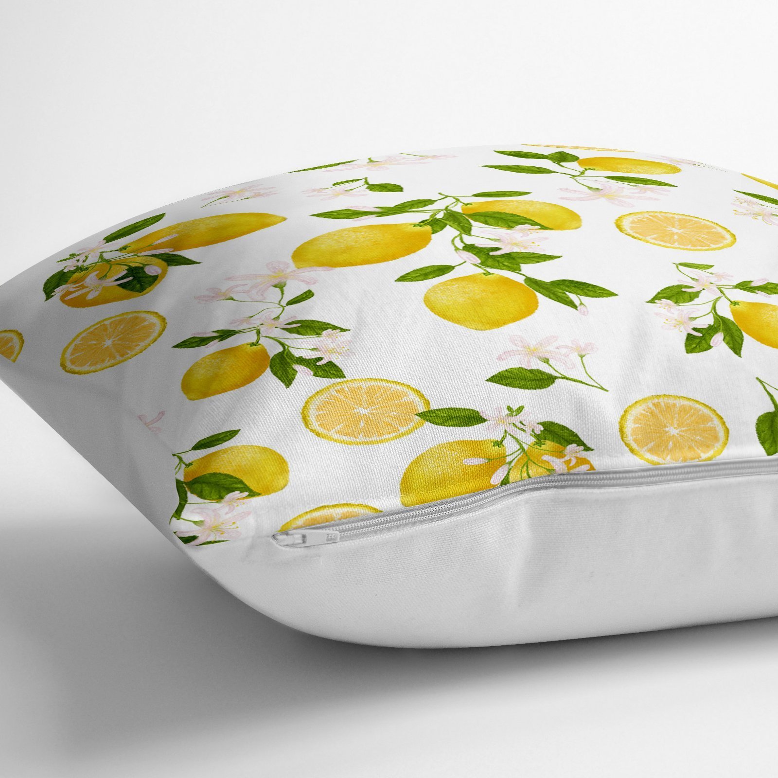 Limon Desenli İlkbahar Renkleri Dijital Baksılı Yer Minderi – 70 x 70 cm